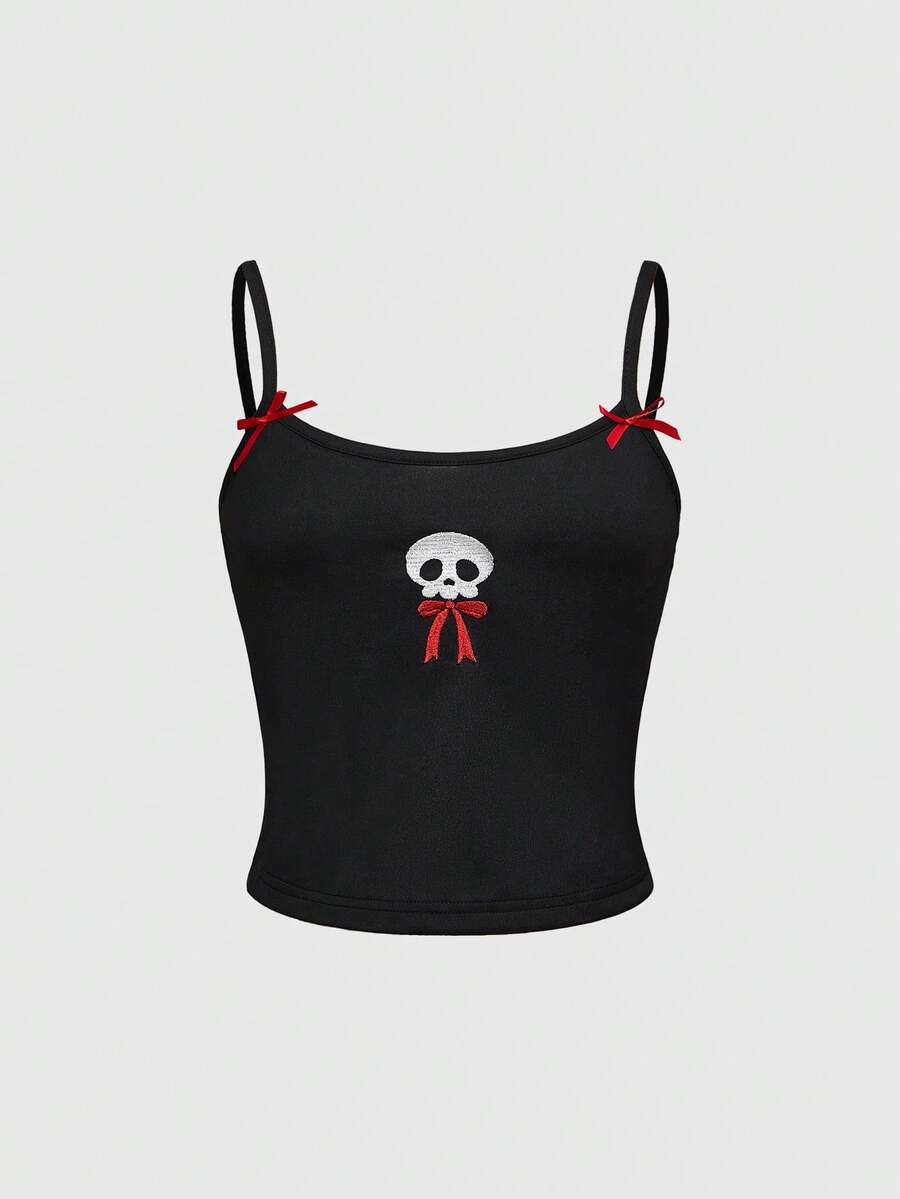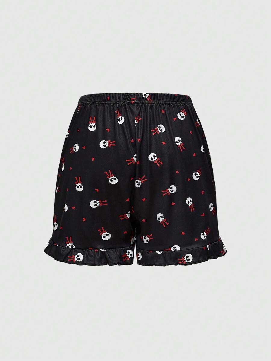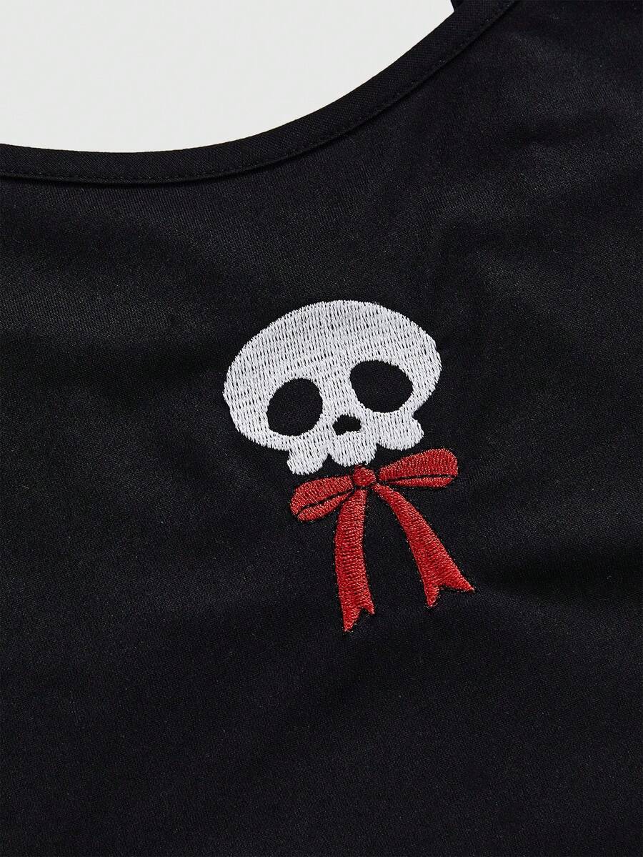 Ensemble de pyjama short et débardeur style gothique, brodé de squelette et d'un nœud