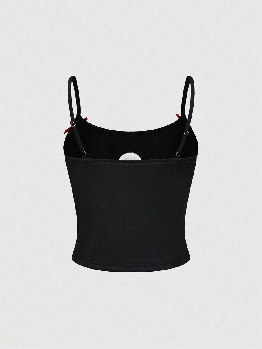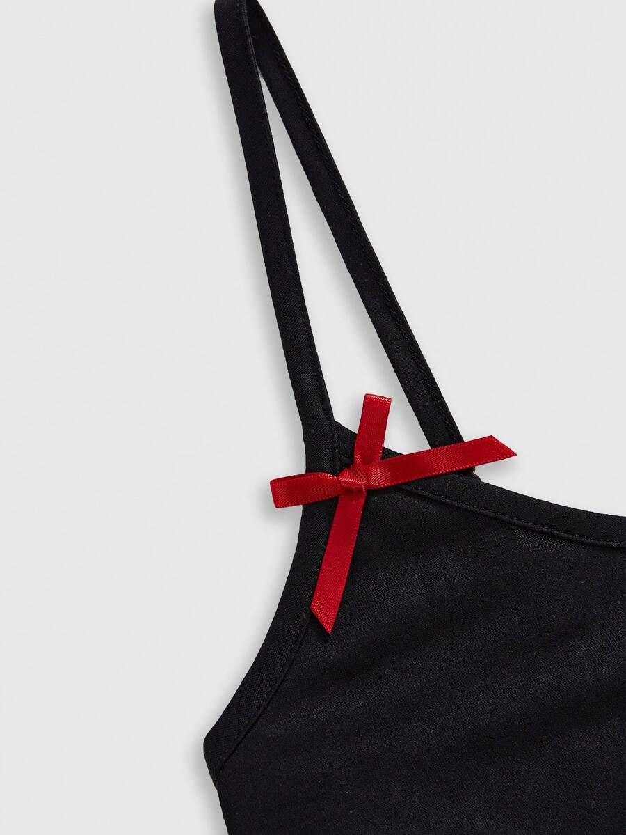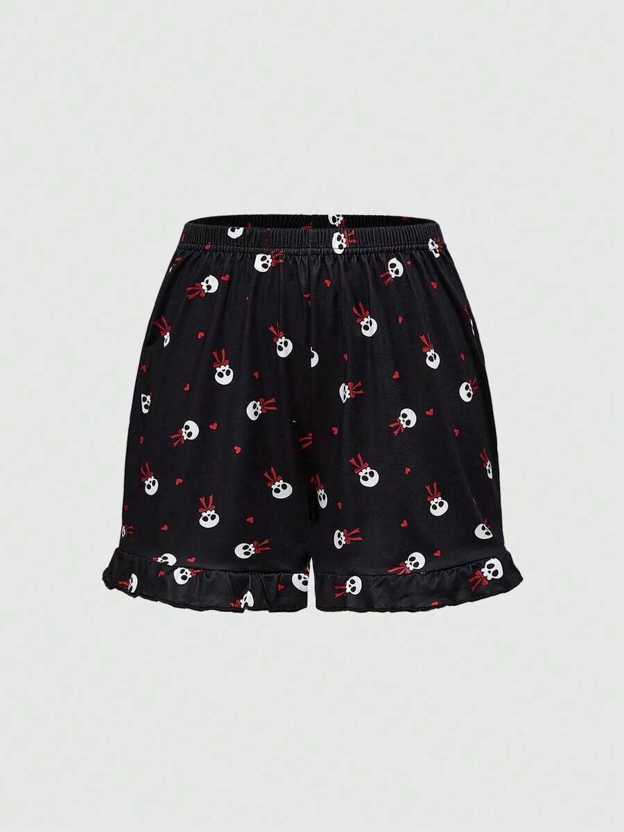 Ensemble de pyjama short et débardeur style gothique, brodé de squelette et d'un nœud