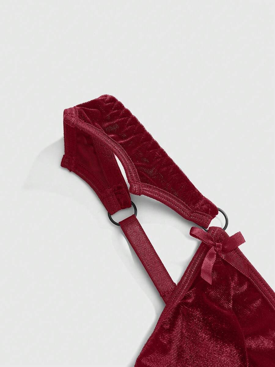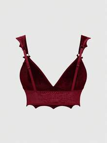 Soutien-gorge sans fil de style gothique en velours avec pendentif en métal en forme de chauve-souris et coupe triangulaire