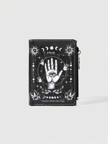 Portefeuille style gothique, pendentif en forme de larme, d'étoile, de soleil et d'épée avec cristaux, design créatif de pentagramme sur la fermeture éclair, porte-cartes de mode décontractée