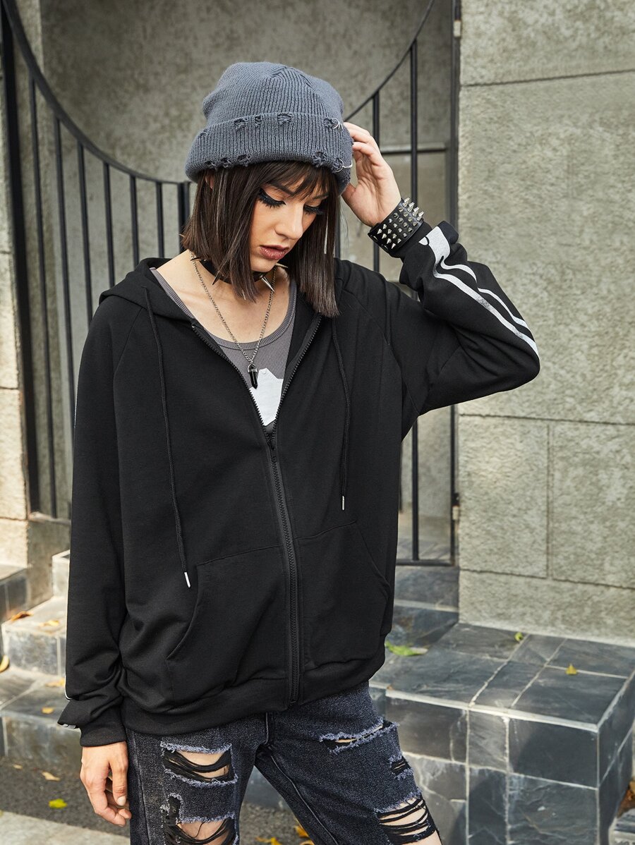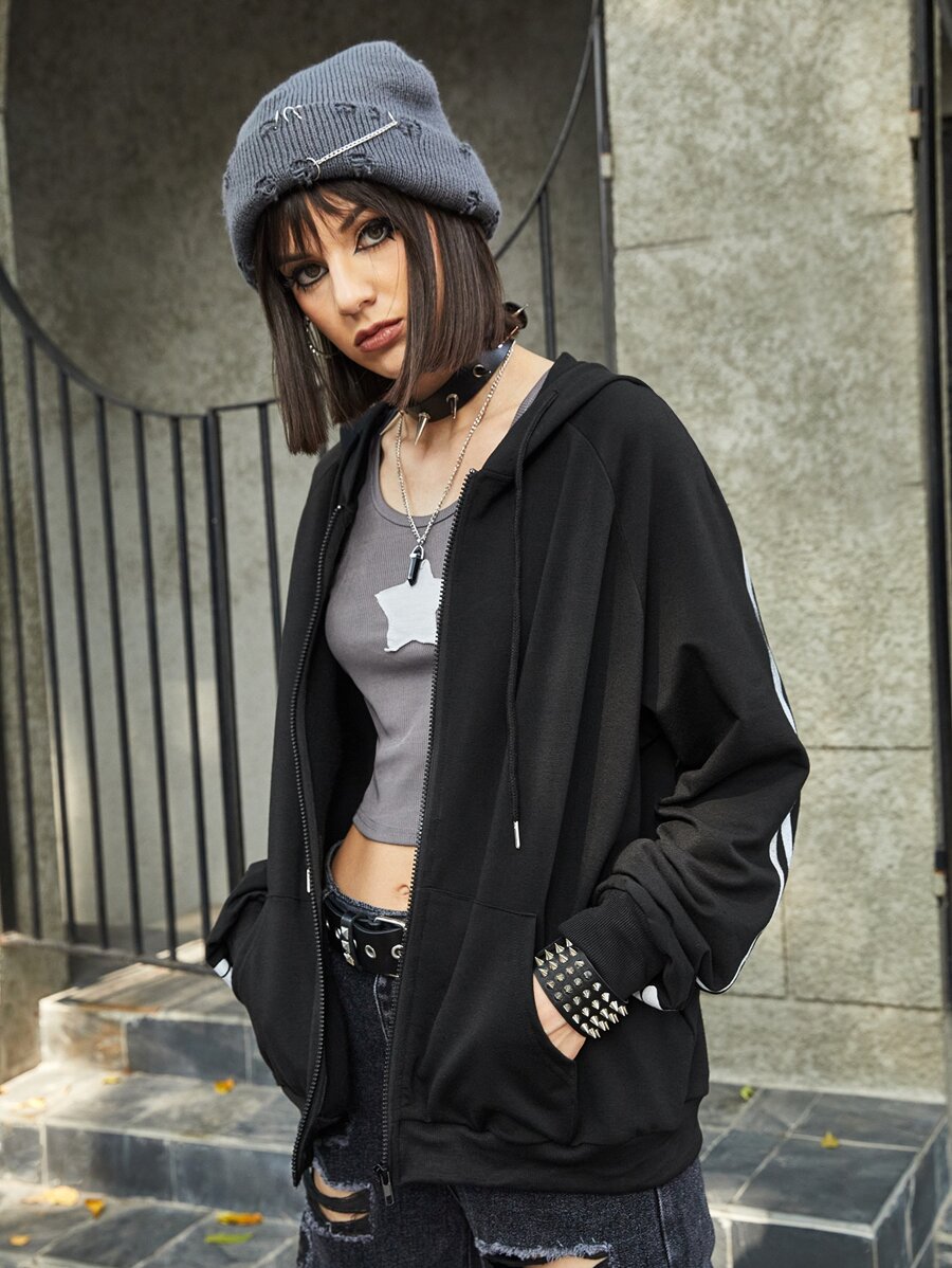 Grunge Punk 1 pièce sweat-shirt à capuche à cordon de serrage avec imprimé de squelette à épaule tombante, école