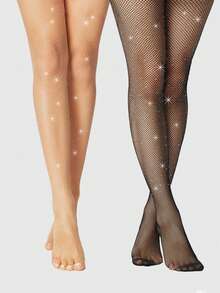 Grunge Punk 2 paires de collants résille sexy avec strass, ensemble de bas polyvalent de base, collants fins pour toutes les saisons