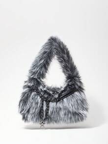 Grunge Punk 2000s Style Women Shoulder Bags,Punk Rivet Biker Bags,Fur Purse ,Autumn & Winter Wallets, Hobo Handbag(Random Pattern)