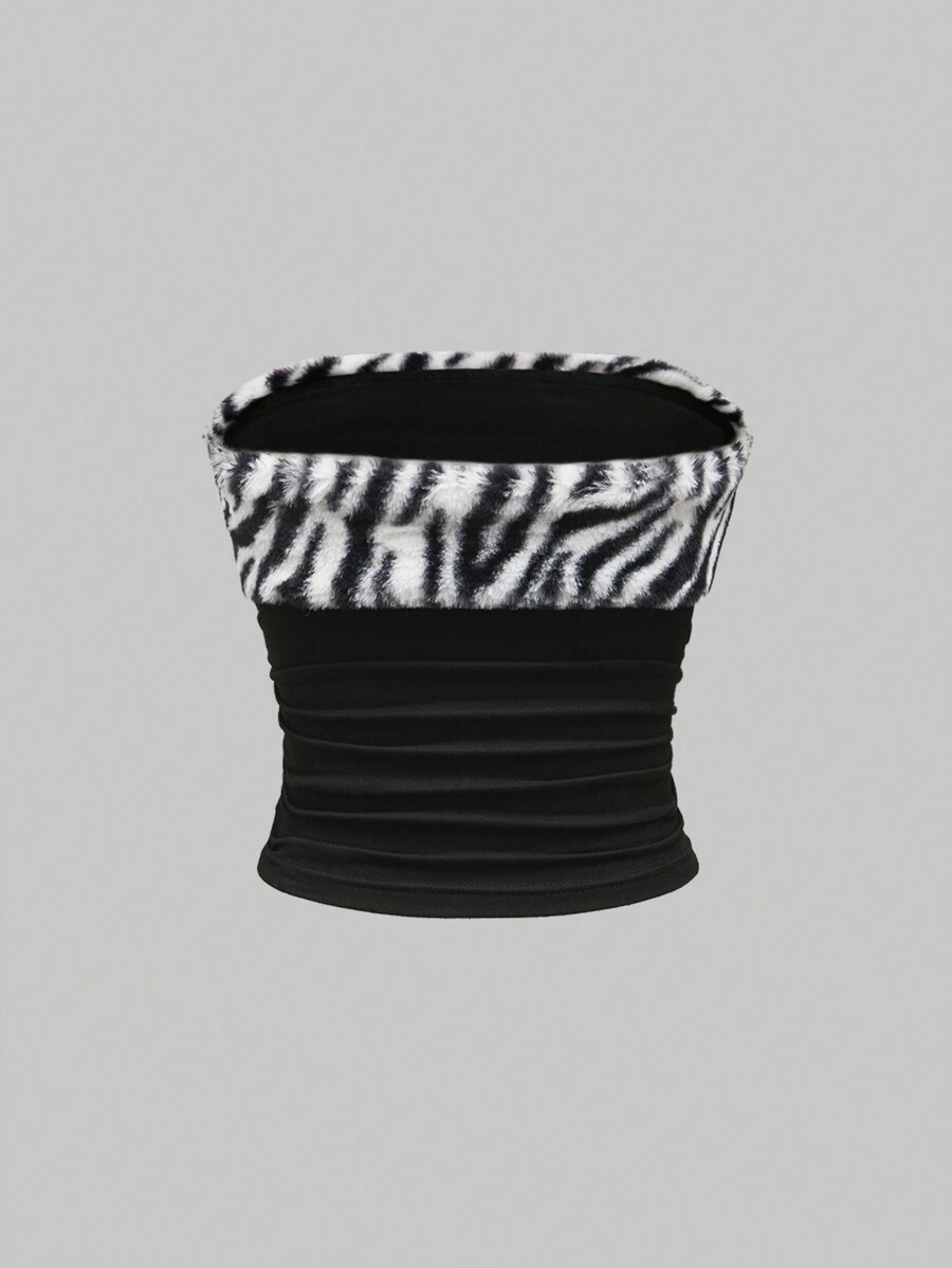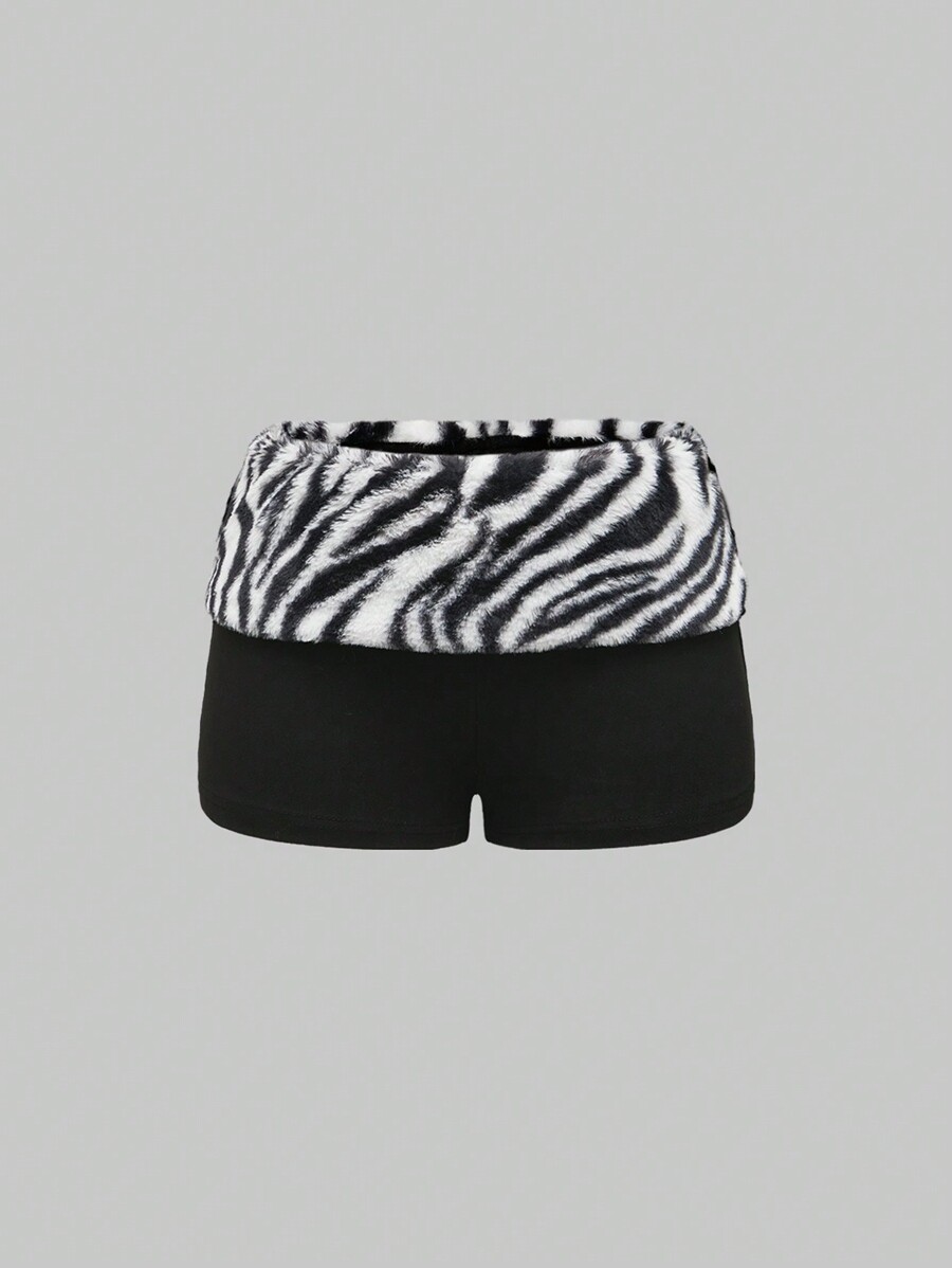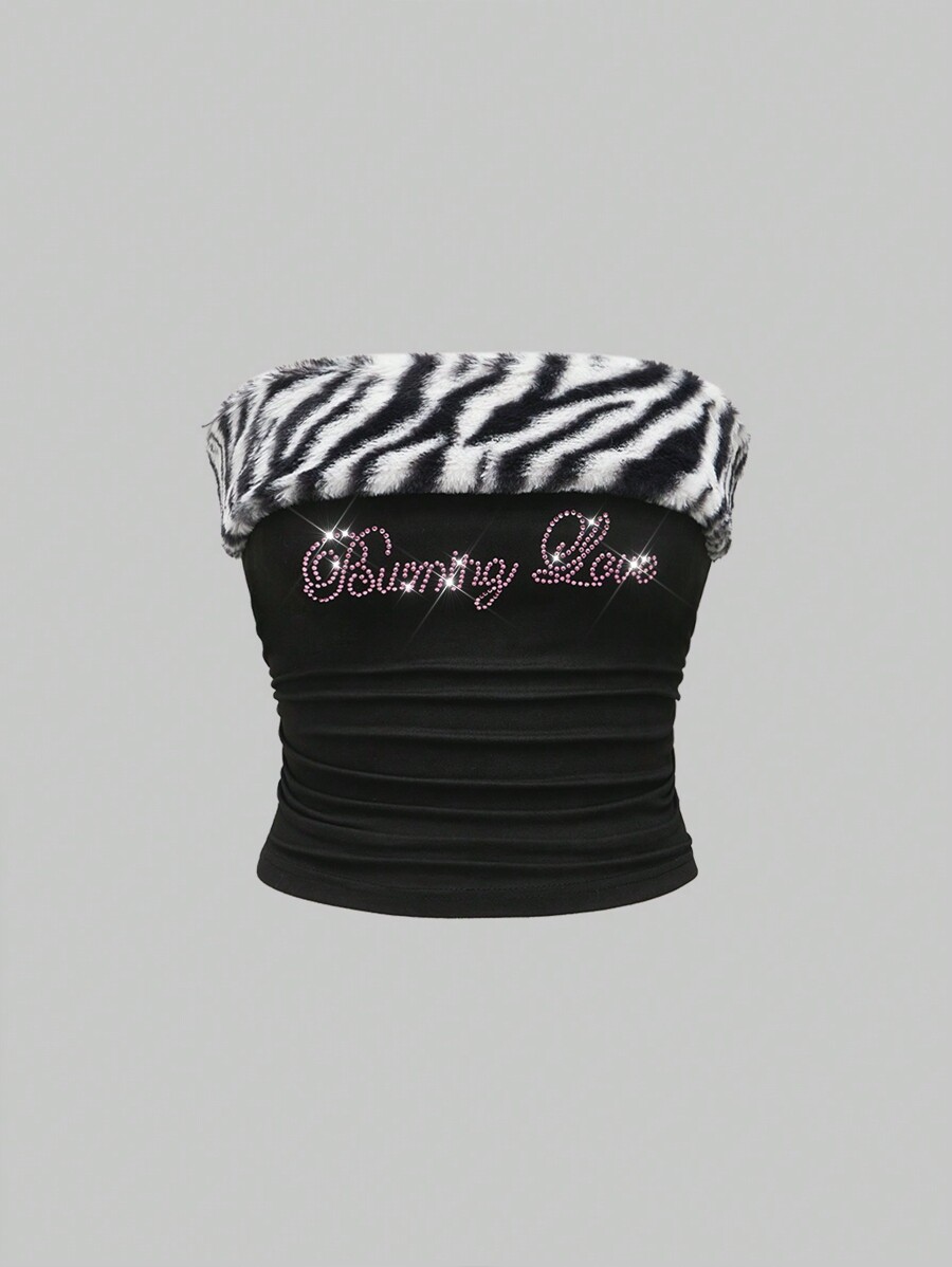 Grunge Punk 2 pièces/Set Top en tube et shorts assortis pour femmes avec imprimé zébré et décoration de strass, style Gyaru