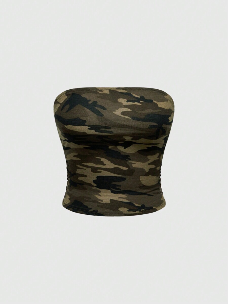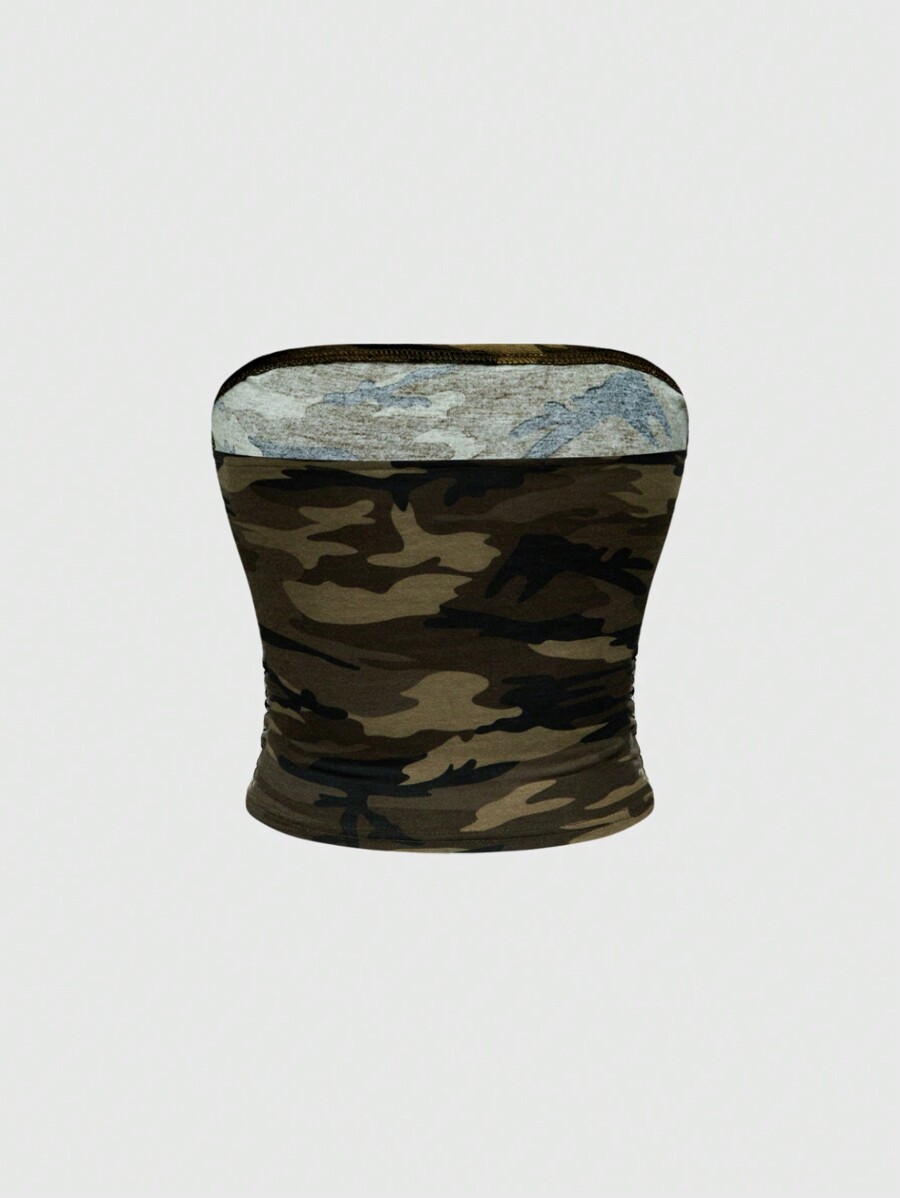 Grunge Punk 2 pièces/set Top court tube et mini-jupe super courte imprimés camouflage Y2K