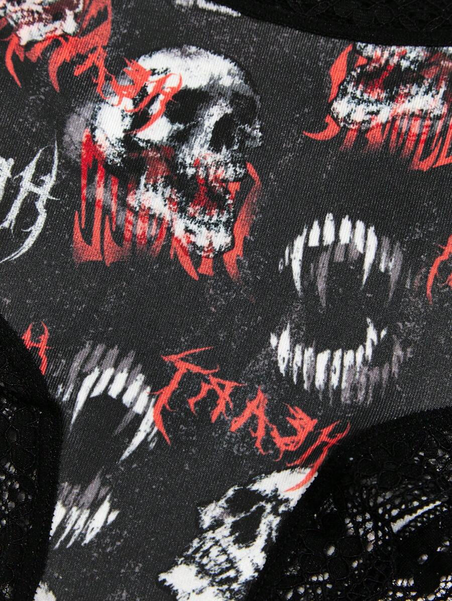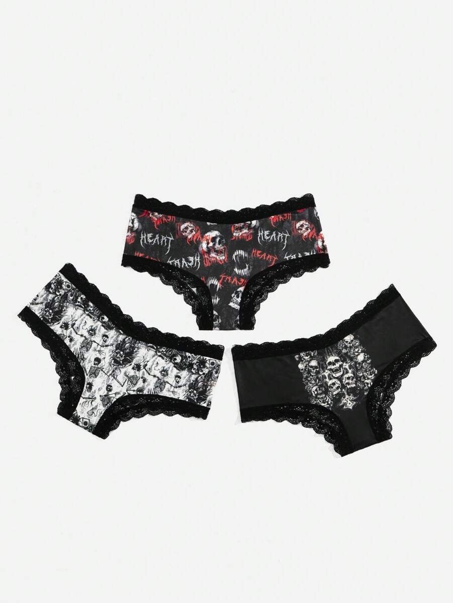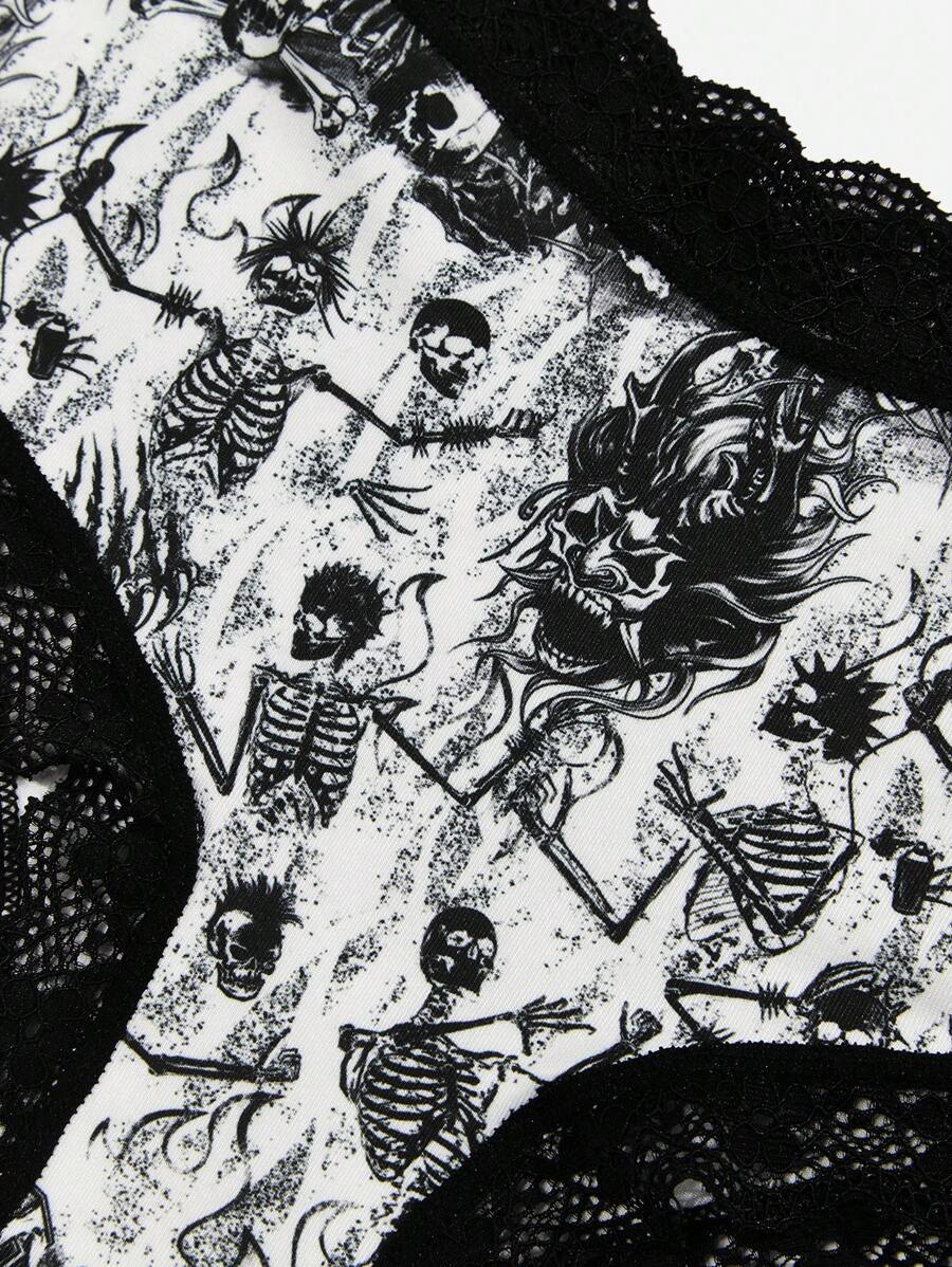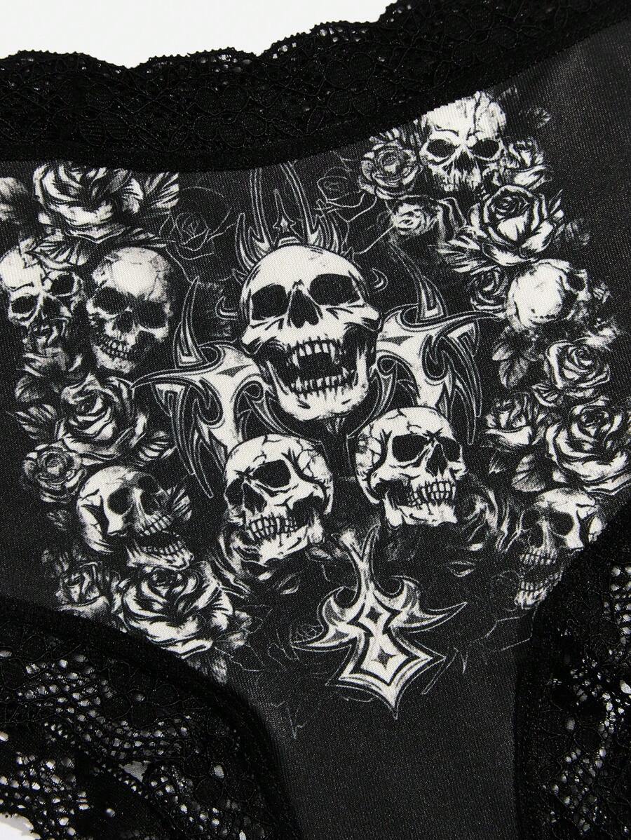 Grunge Punk 3 pièces Set De Culottes Motif Tête De Mort En Dentelle