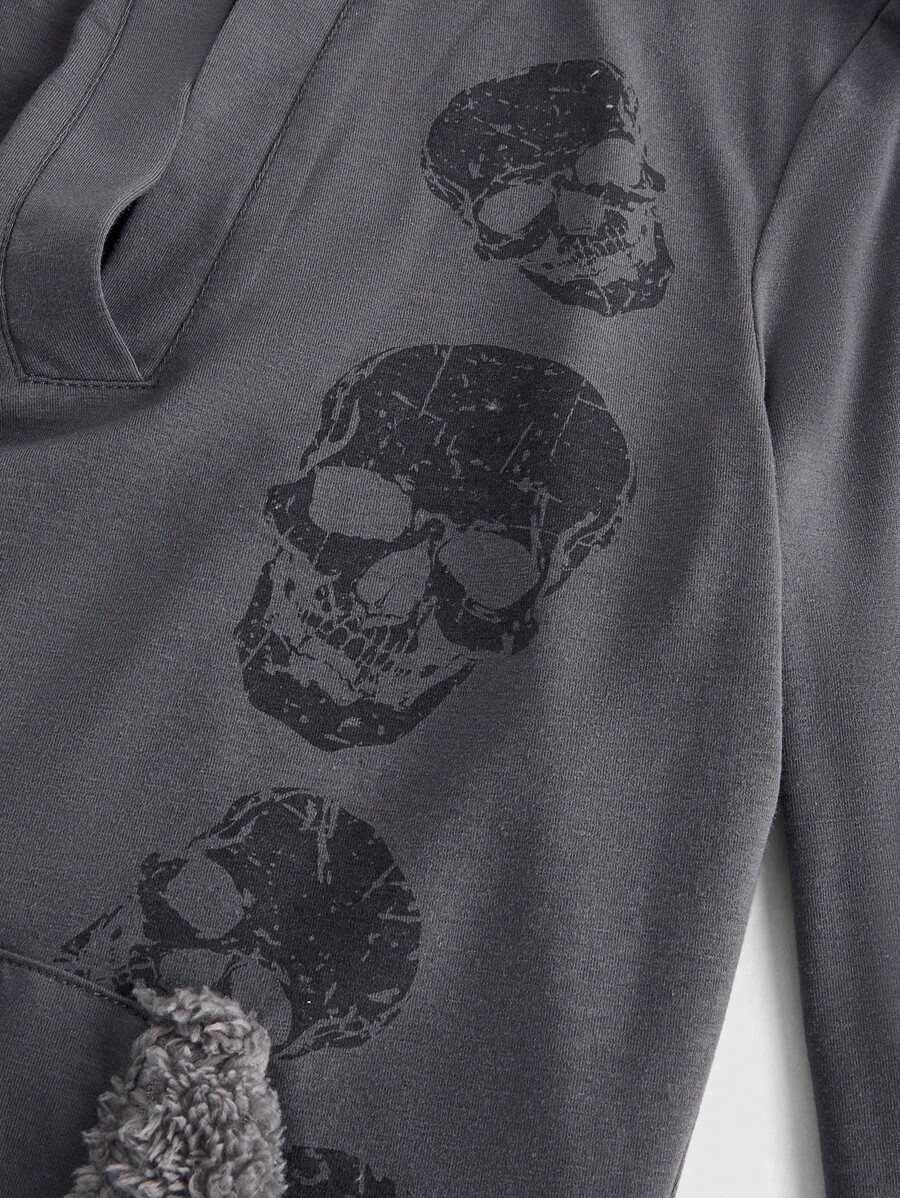 Grunge Punk sweat-shirt à capuche doublé thermique à imprimé crâne pour l'automne/hiver, ajusté, style punk pour femmes