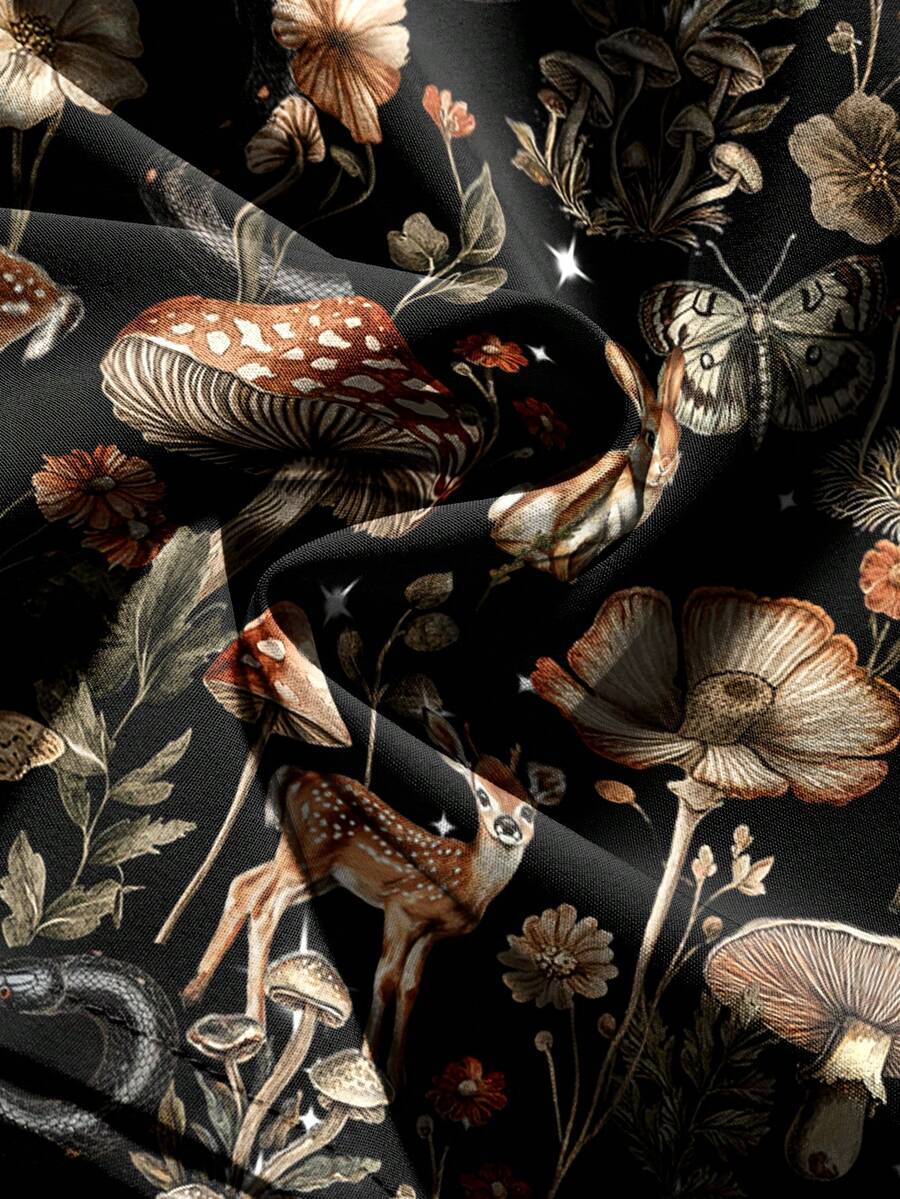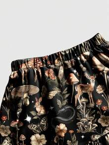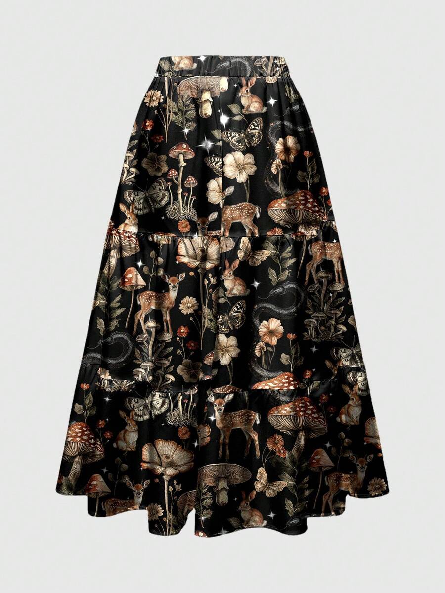 Grunge Punk Jupe mini superposée imprimée de cerfs, de champignons, de soleils et de lunes dans un style bohème foncé pour femmes