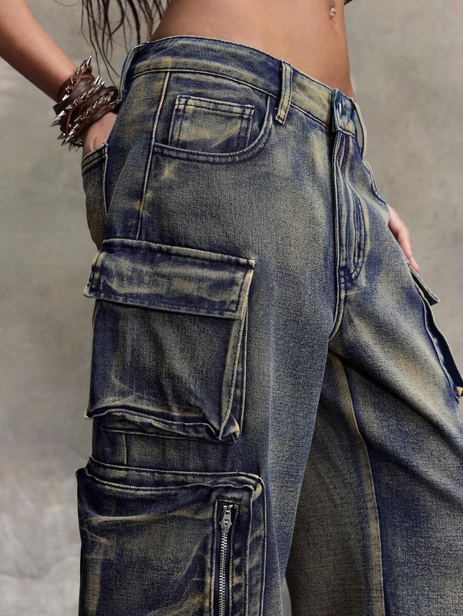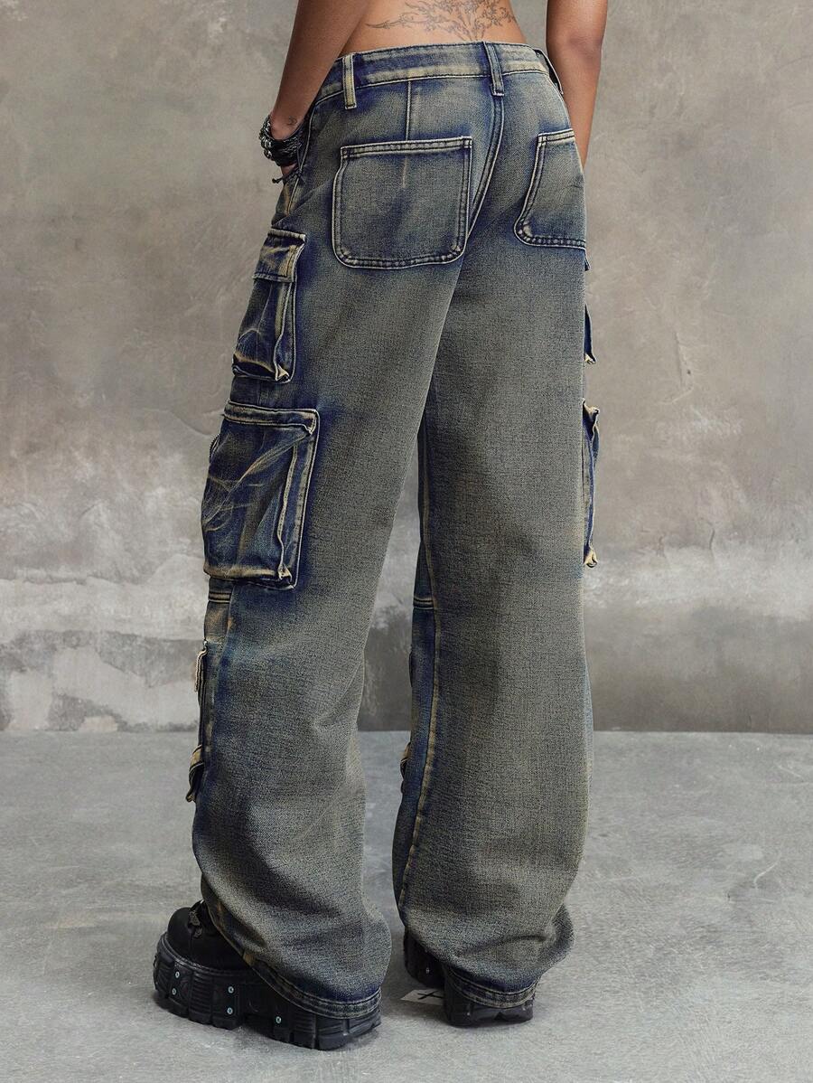 Grunge Punk Jeans femme en denim à jambes larges et coupe ample, style distressed, style de rue punk