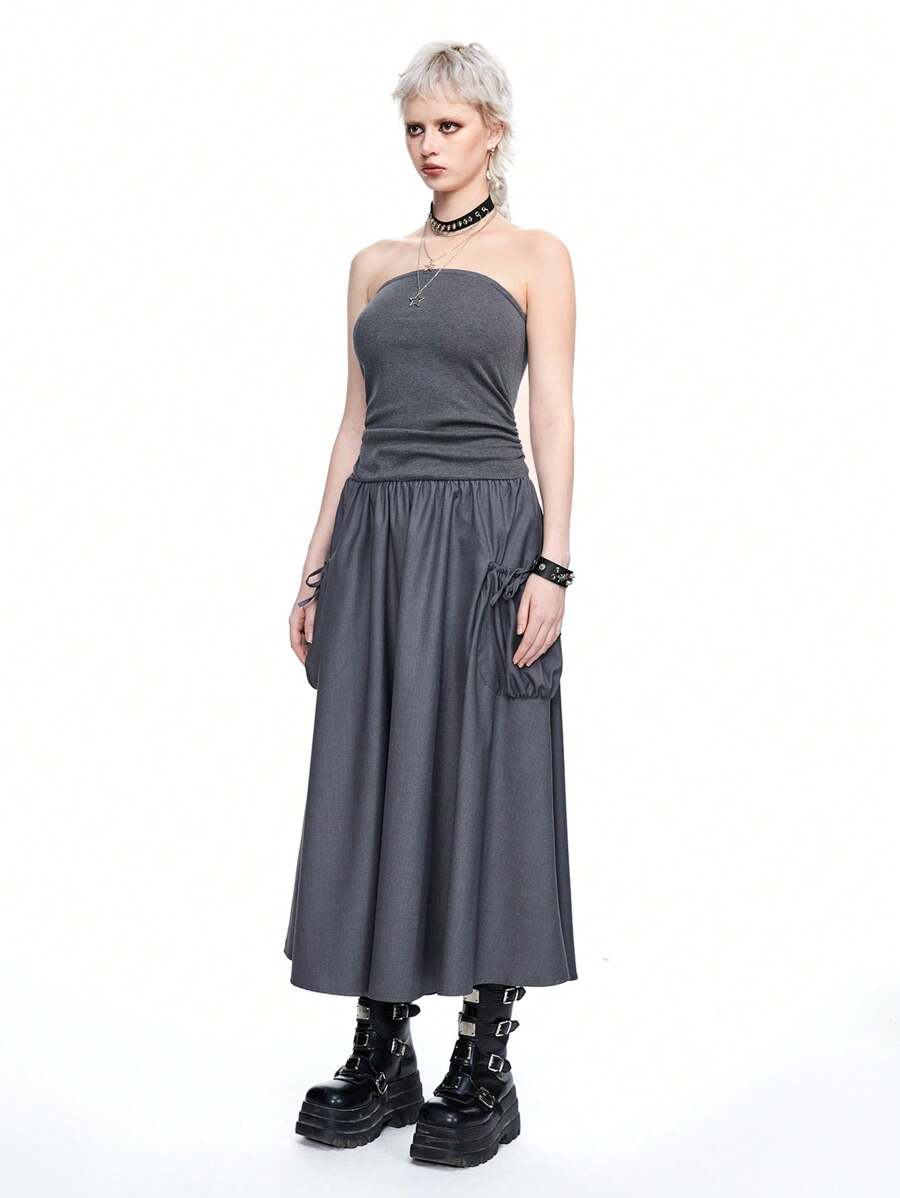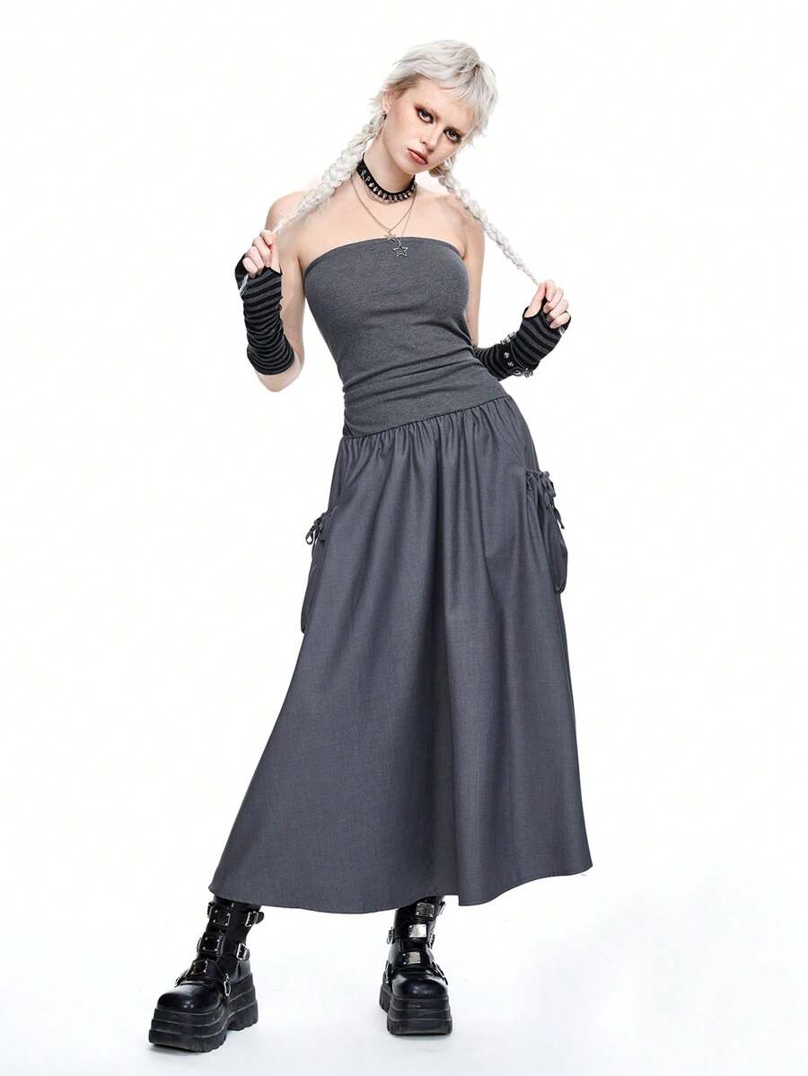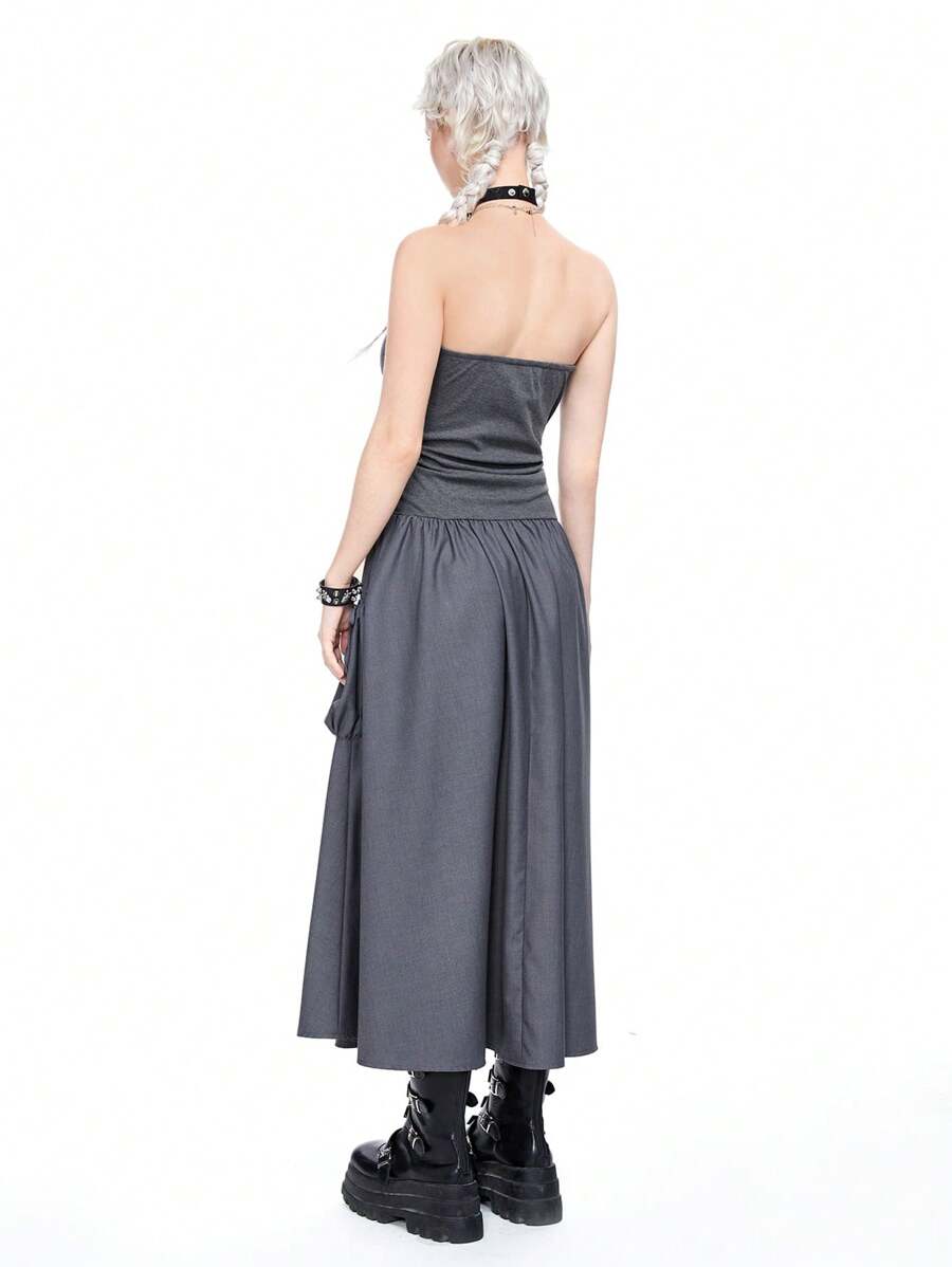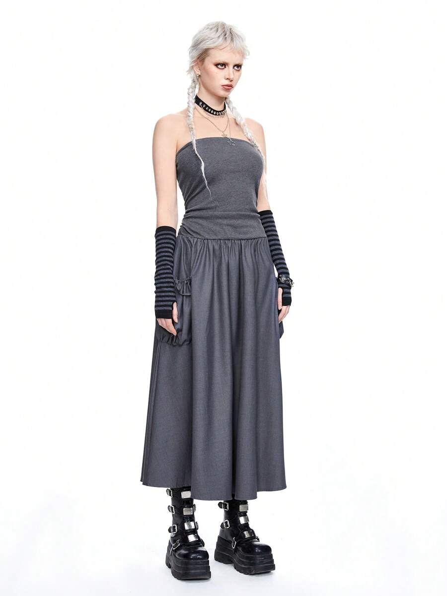 Grunge Punk Robe midi ajustée style français bandeau élégante romantique décontractée pour femmes, tenue de concert