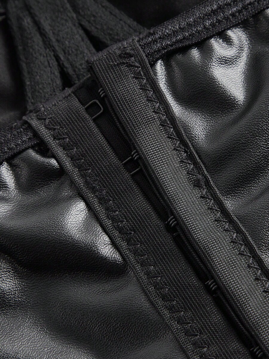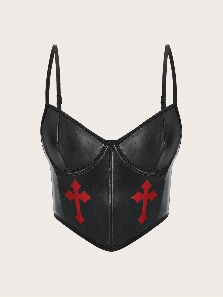 Grunge Punk Top À Fines Brides Motif Croix À Ourlet Bandana en PU