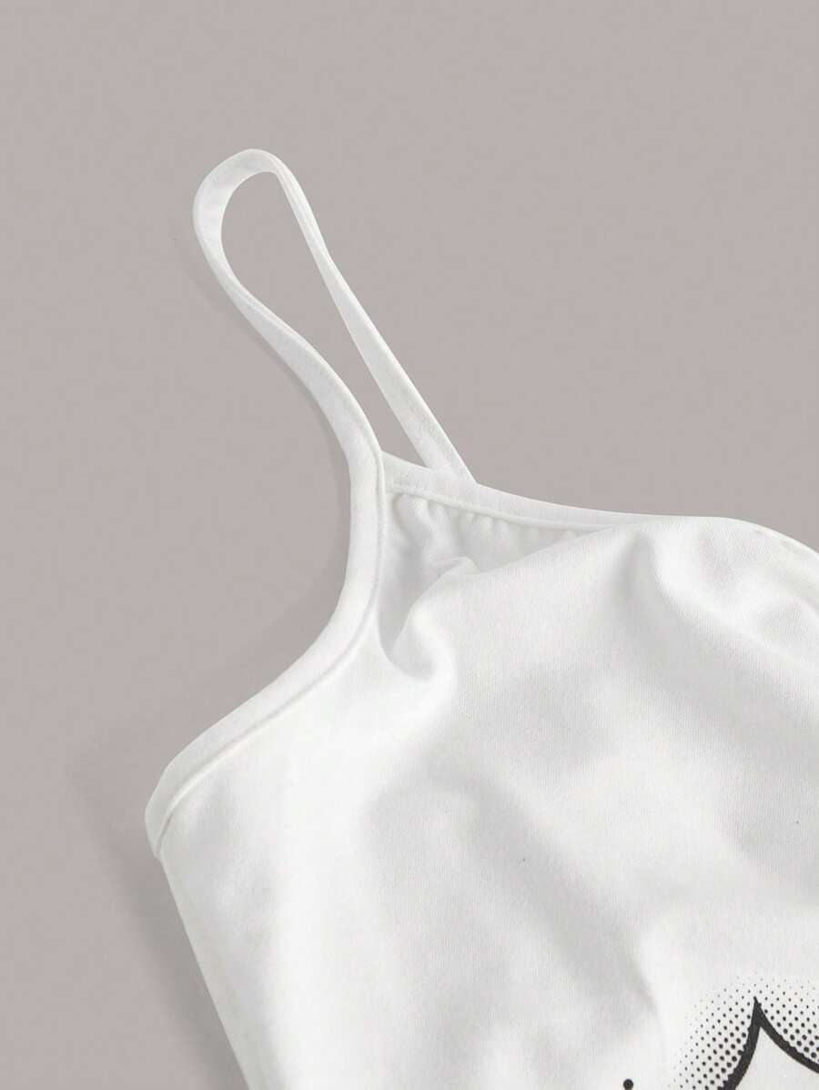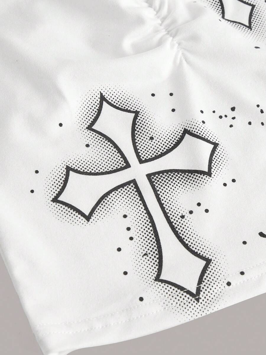 Grunge Punk Top À Fines Brides Croisé Imprimé À Ruchés