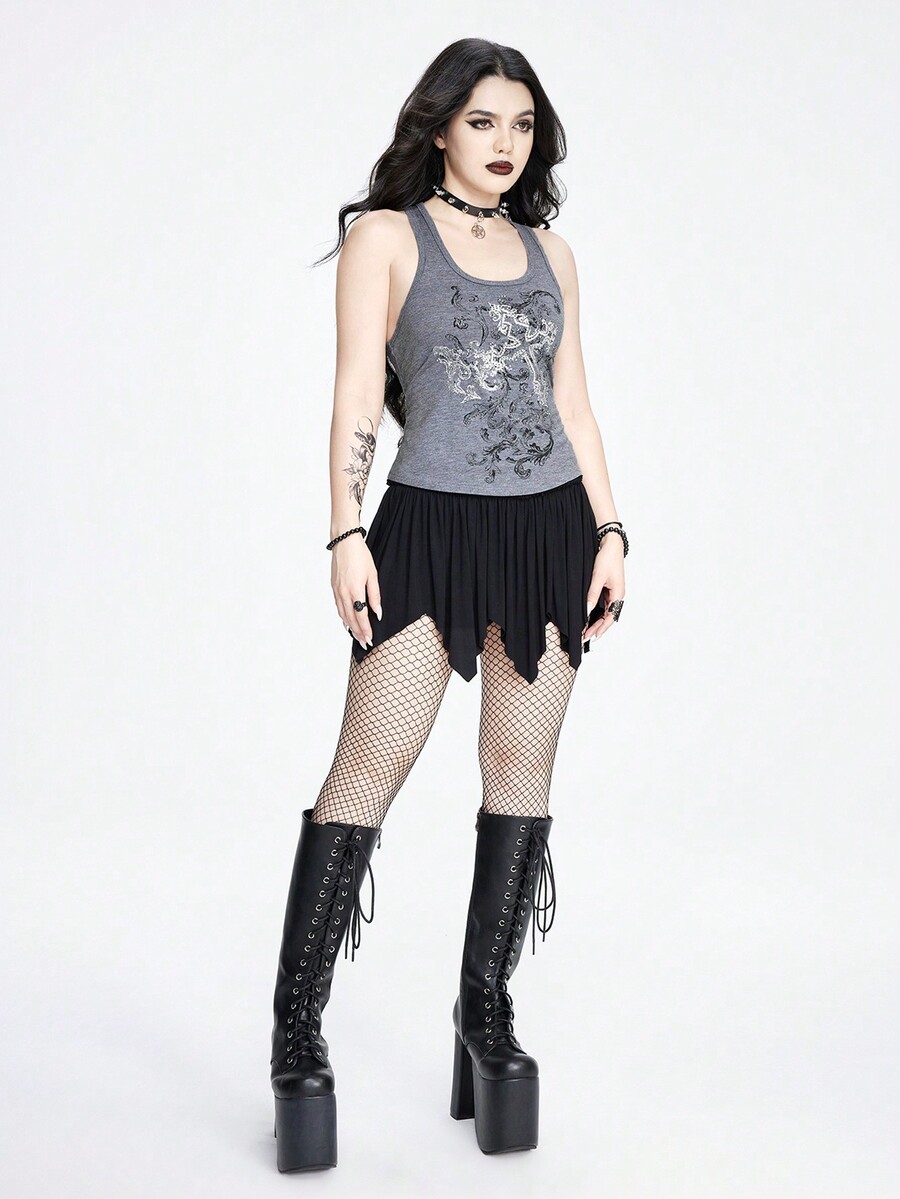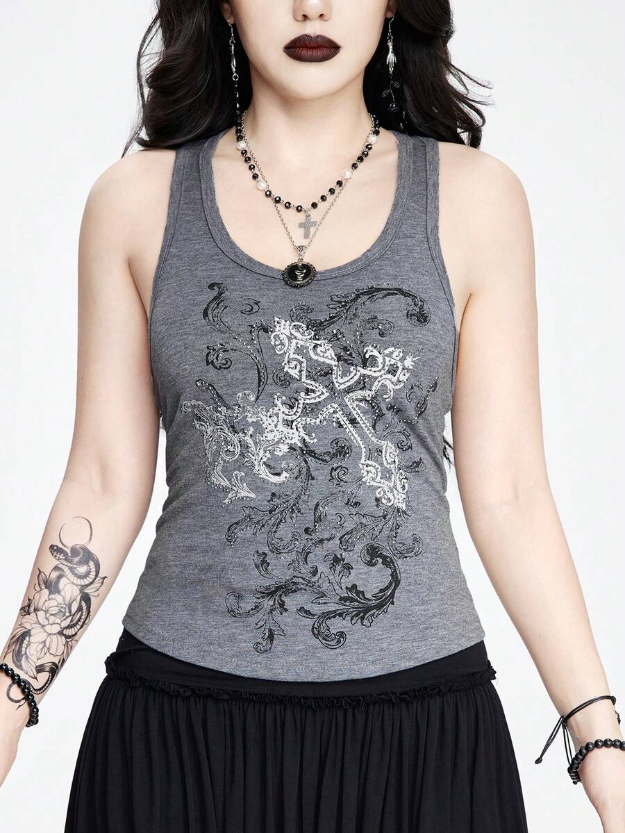 Grunge Punk Débardeur croisé avec motif de vigne et orné de strass