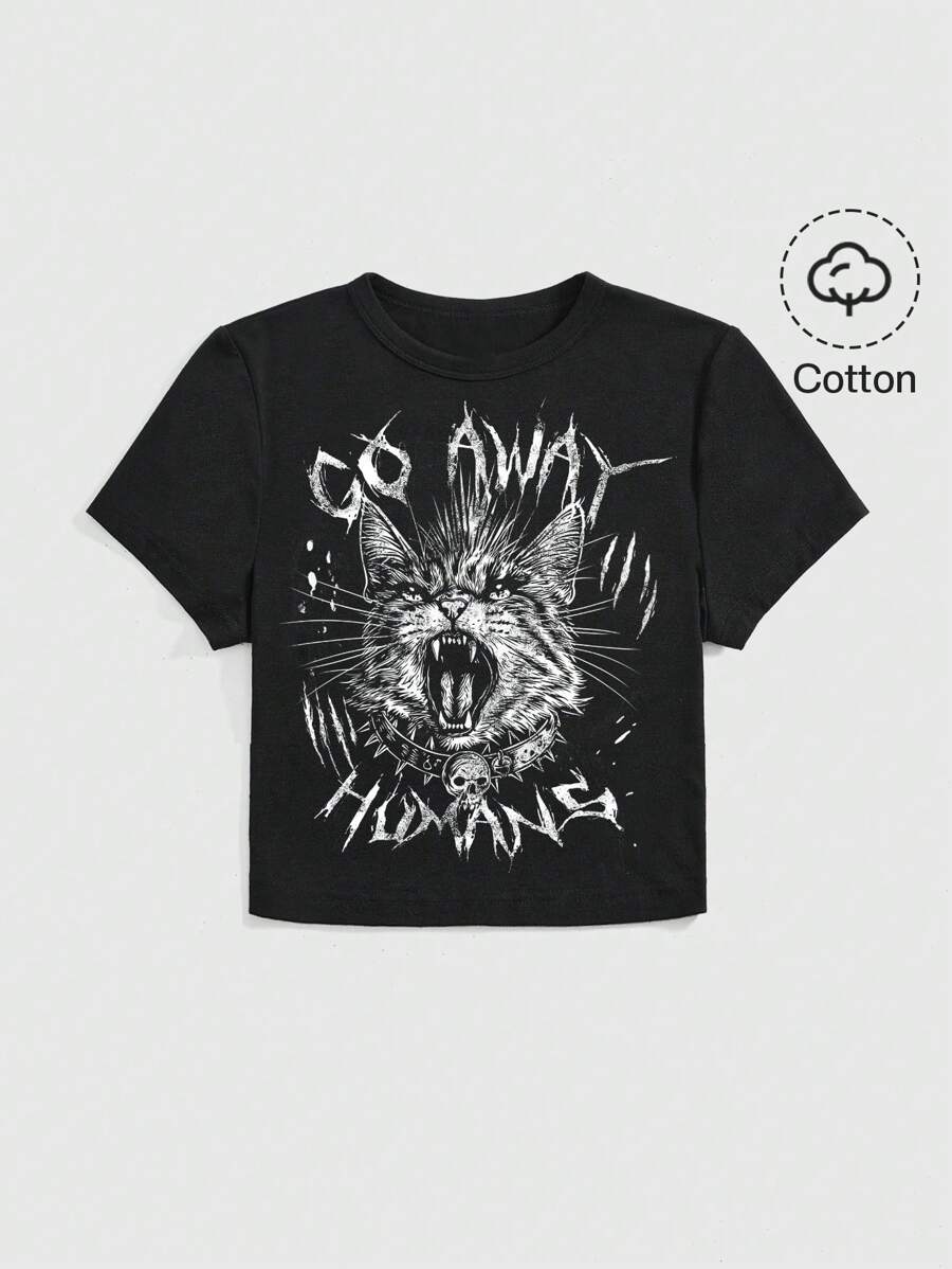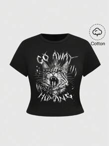 Grunge Punk T-shirt à manches courtes avec imprimé chat noir punk rock de festival de musique de rue pour femmes en tailles plus