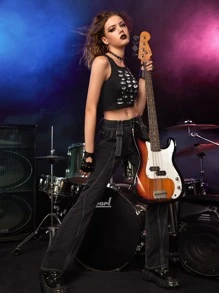 Grunge Punk Top sans manches à imprimés yeux