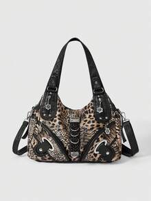 Grunge Punk Sac à main de femme imprimé léopard mode, sac casual punk , sac à épaule de femme rétro locomotive