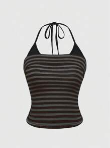 Grunge Punk Top style débardeur fashion et sexy à col ras-du-cou, rayé et bicolore, pour femmes
