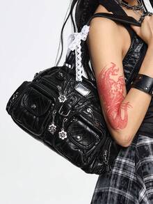 Grunge Punk Sac seau en cuir PU de couleur unie pour le travail