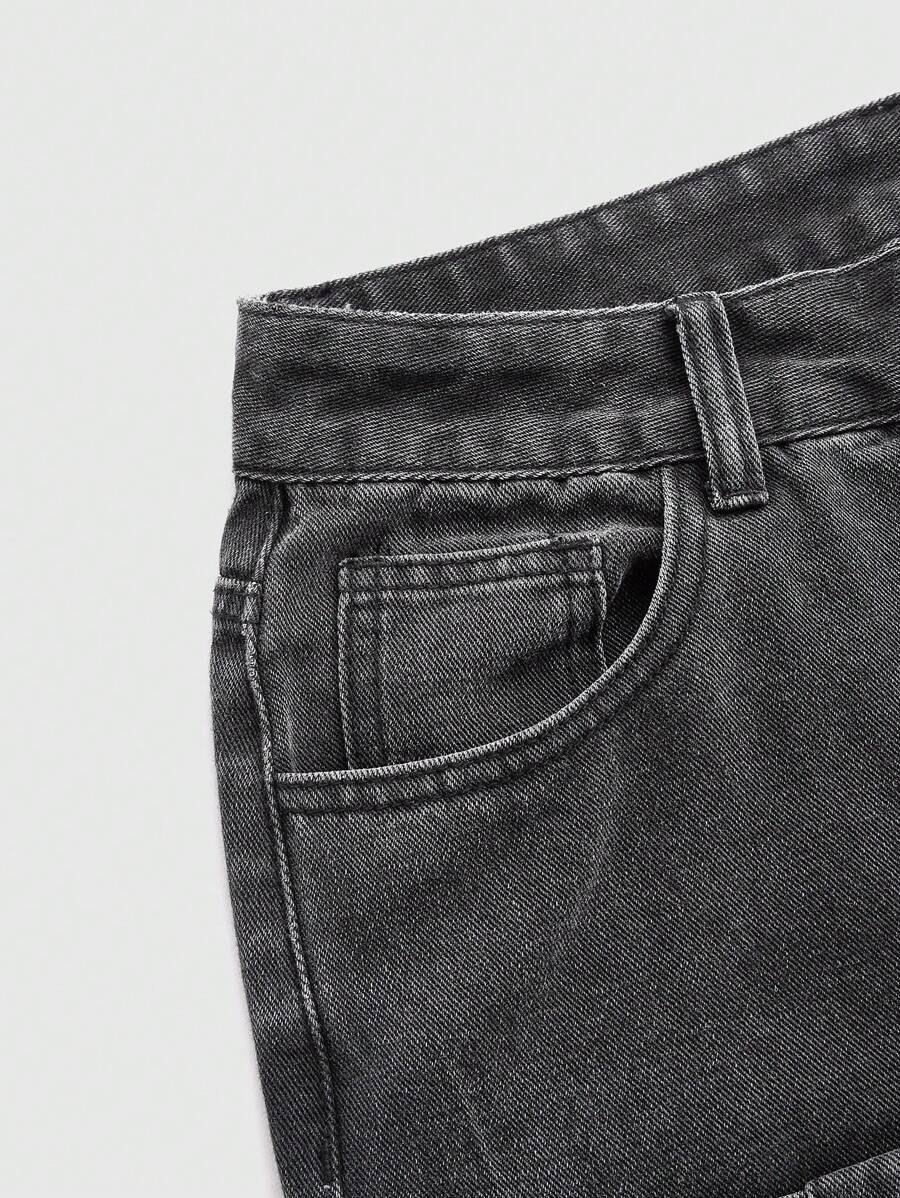 Grunge Punk Jean Cargo Coupe Droite Avec Poche Rabattable