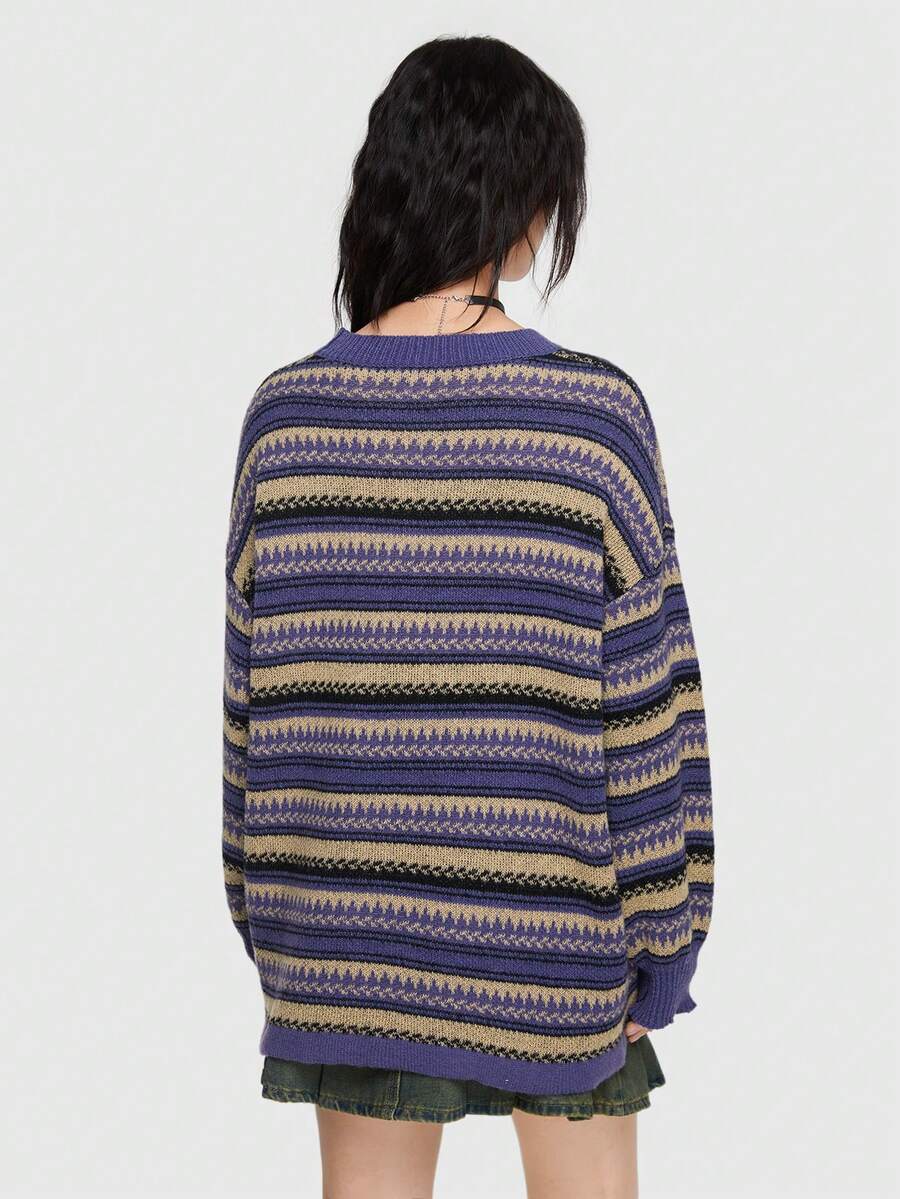 Grunge Punk Pull Motif Géométrique Épaule tombante