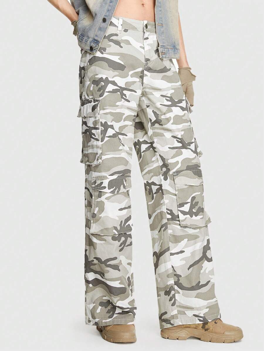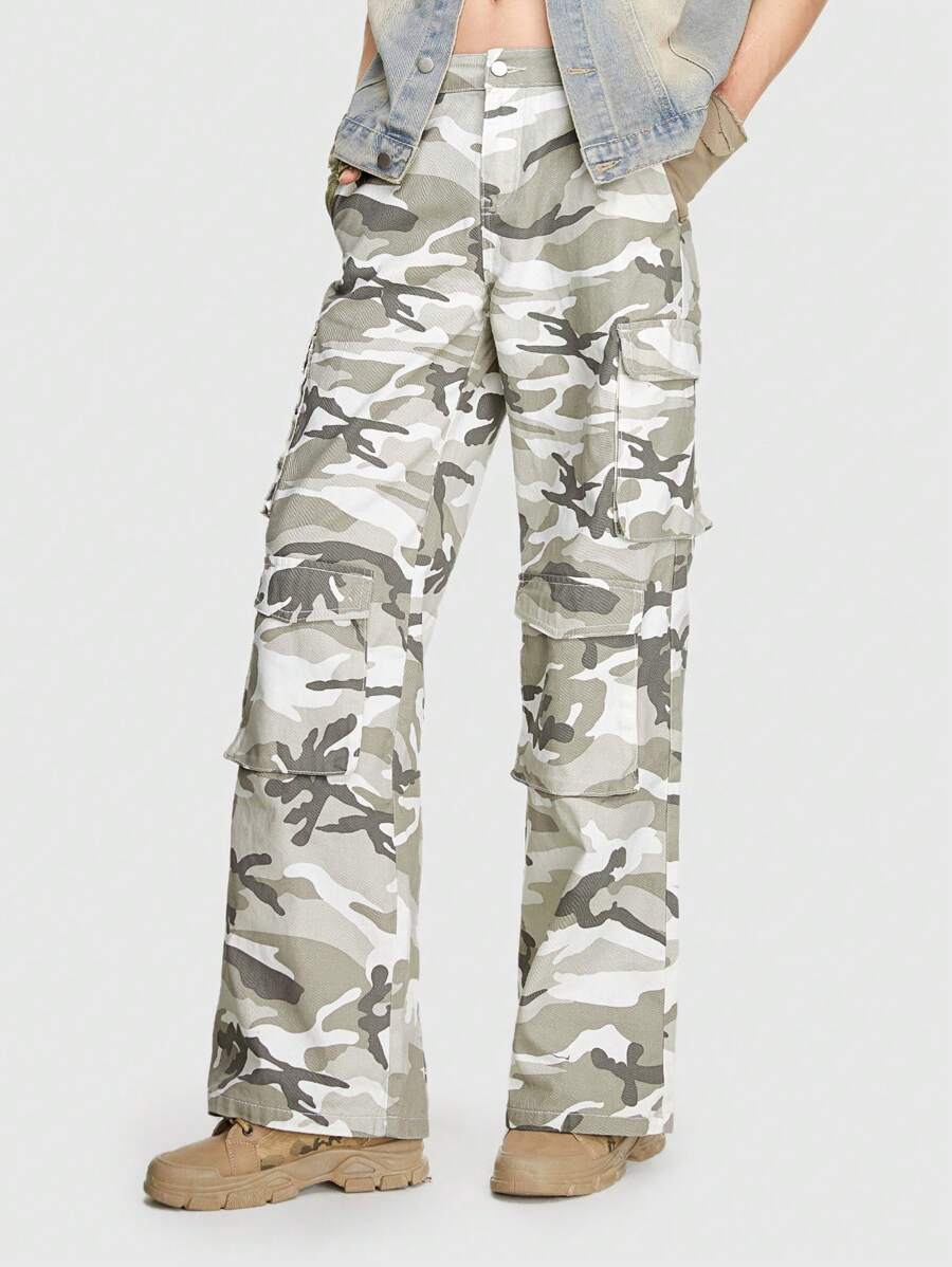 Grunge Punk Homme Jean Droit Imprimé Camouflage