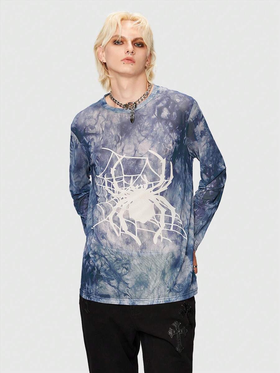 Grunge Punk Homme T-shirt Tie Dye Araignée Imprimé