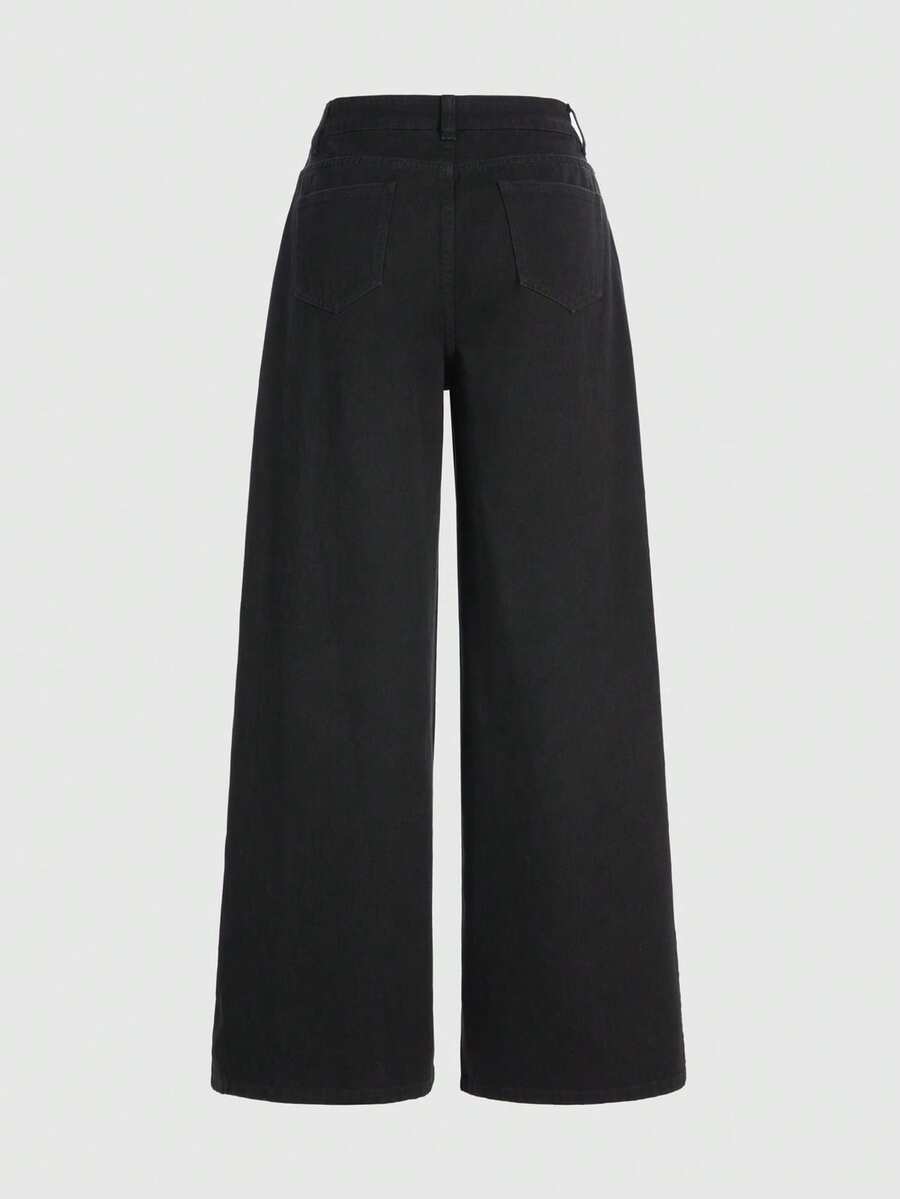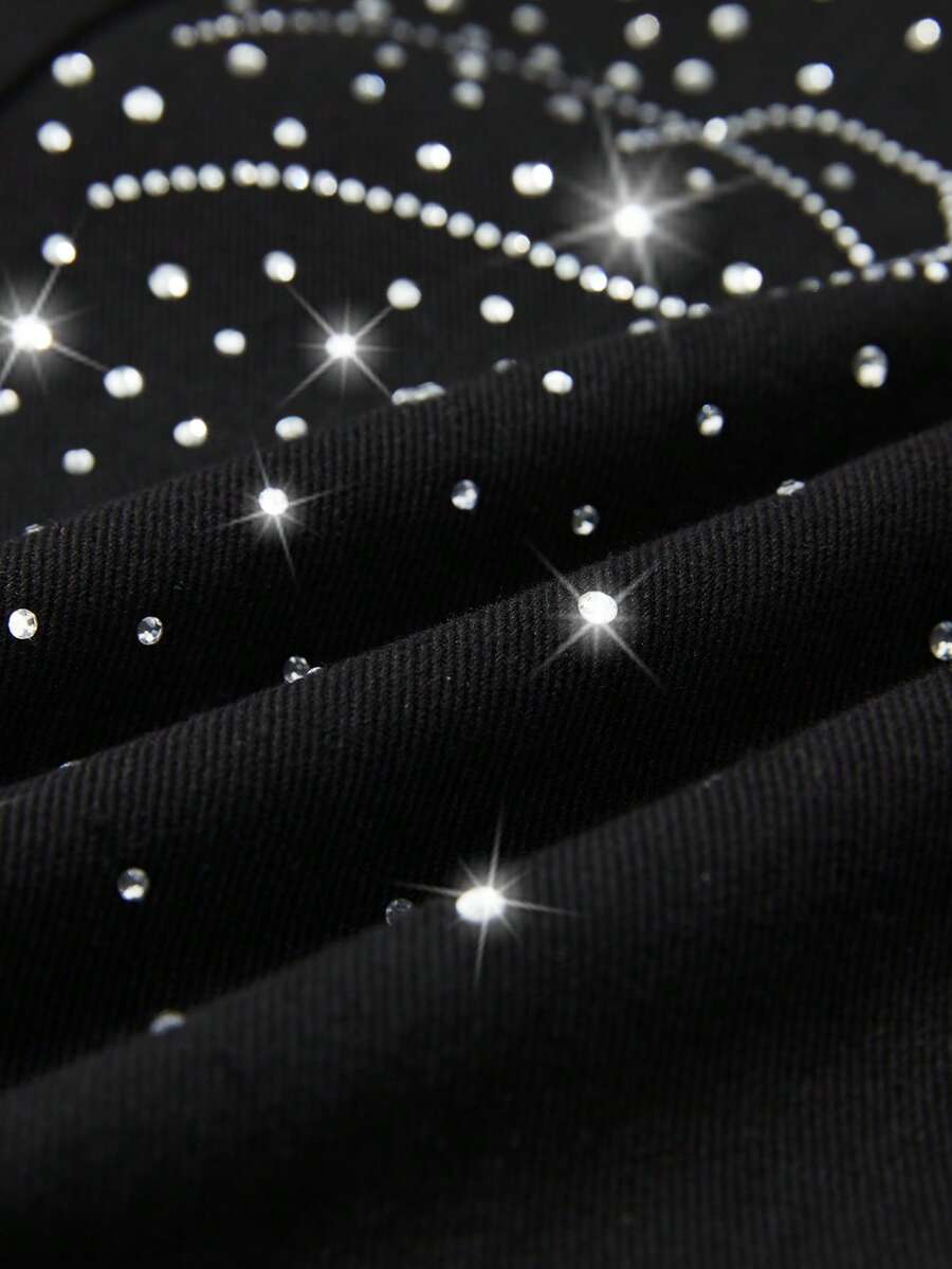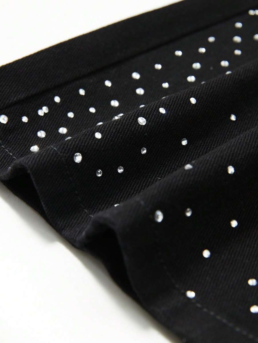 Grunge Punk Jeans à jambes larges et coupe ample, fortement ornés de strass. Design de niche pour femmes