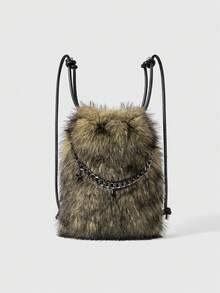 Grunge Punk Sac à dos pour femmes, sac à main marron, peluche, sac en peluche, accessoire pendentif, charm nœud papillon, charm cœur, chaîne en métal, mode, personnalité, polyvalent, shopping, rue, filles douces et cool, filles branchées, Y2K, punk, quotidien, automne et hiver (motif aléatoire)