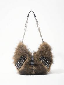 Grunge Punk Sac à épaule pour femmes, sac Hobo, fausse fourrure, sac moelleux, sac à rivets, mode, personnalisé, polyvalent, de rue, doux et cool pour filles, filles branchées, punk, Y2K, quotidien, automne et hiver (motif aléatoire)