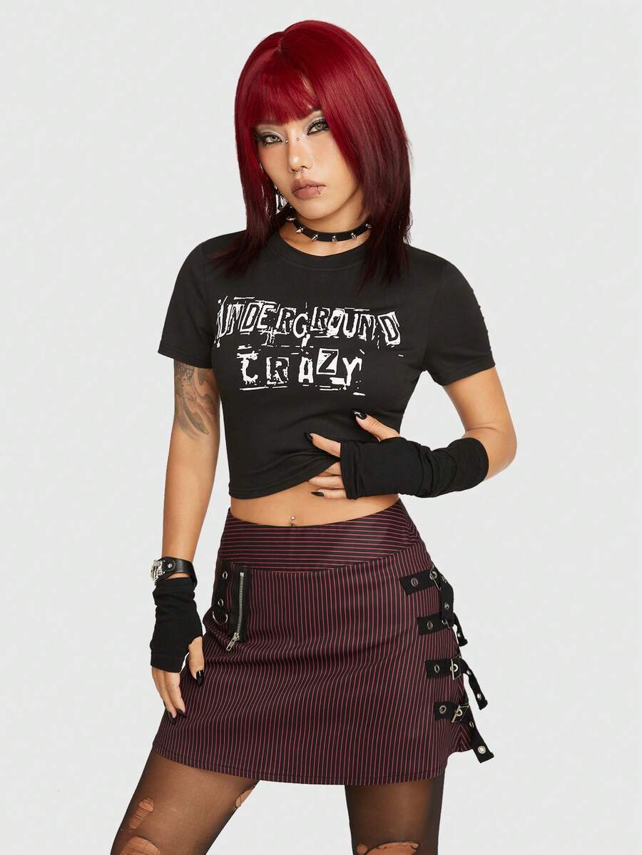 Grunge Punk T-Shirt Court À Lettres