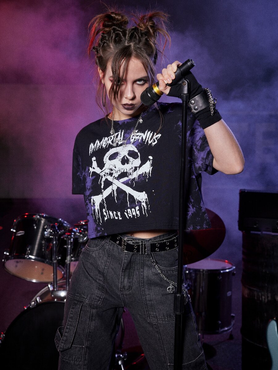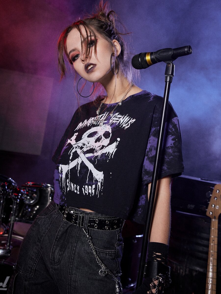 Grunge Punk T-shirt court à lettre à motif tête de mort tie dye