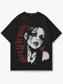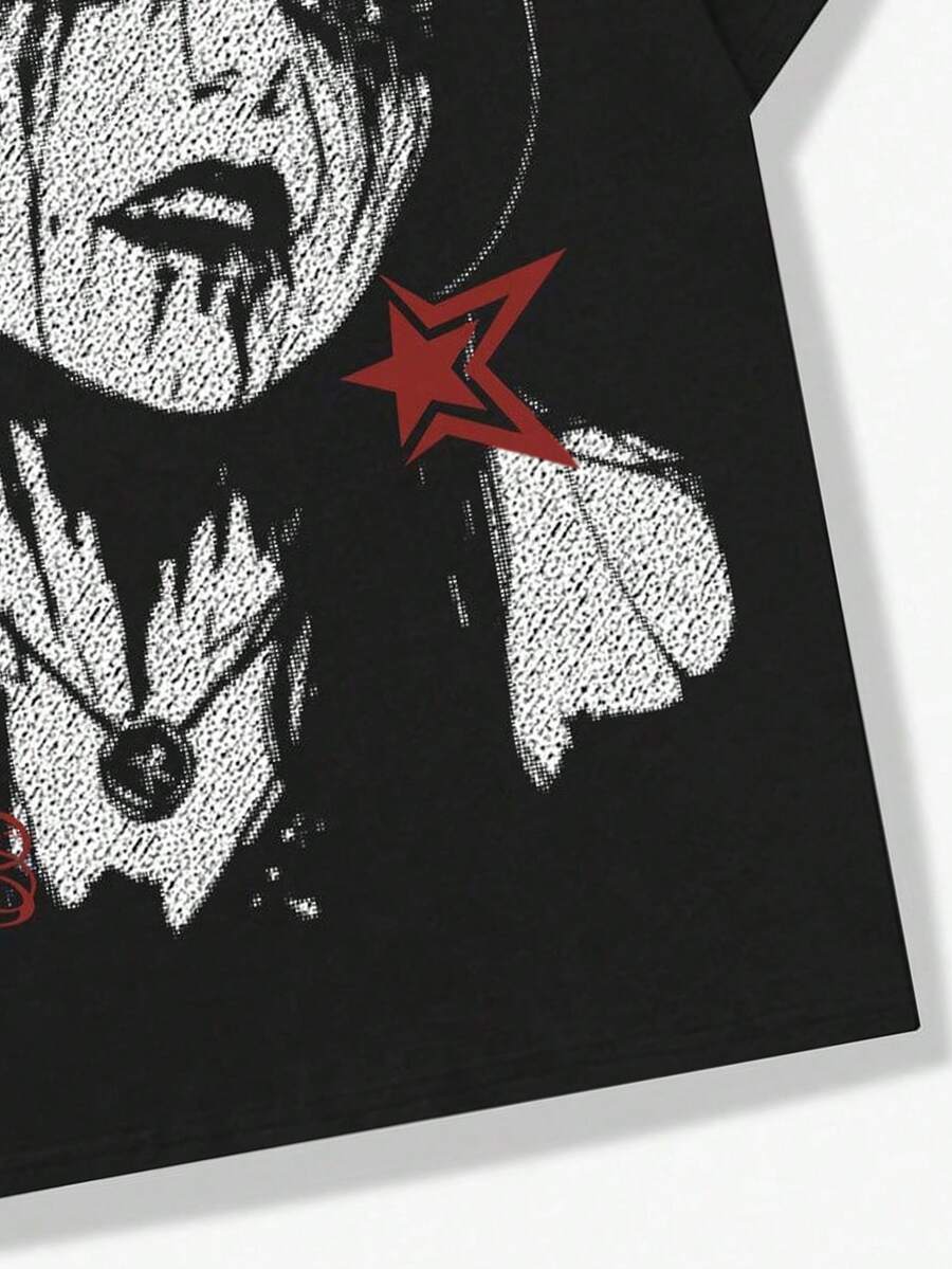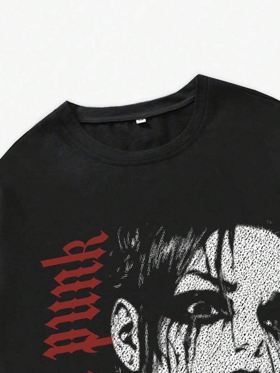 Grunge Punk T-shirt à manches courtes vintage homme avec silhouette décolorée par le lavage, imprimé d'icône culturelle, style Y2K, pour école