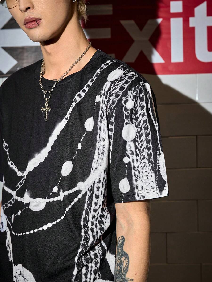 Grunge Punk T-shirt à manches courtes décontracté pour hommes avec imprimé chaîne, été
