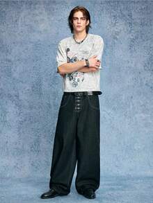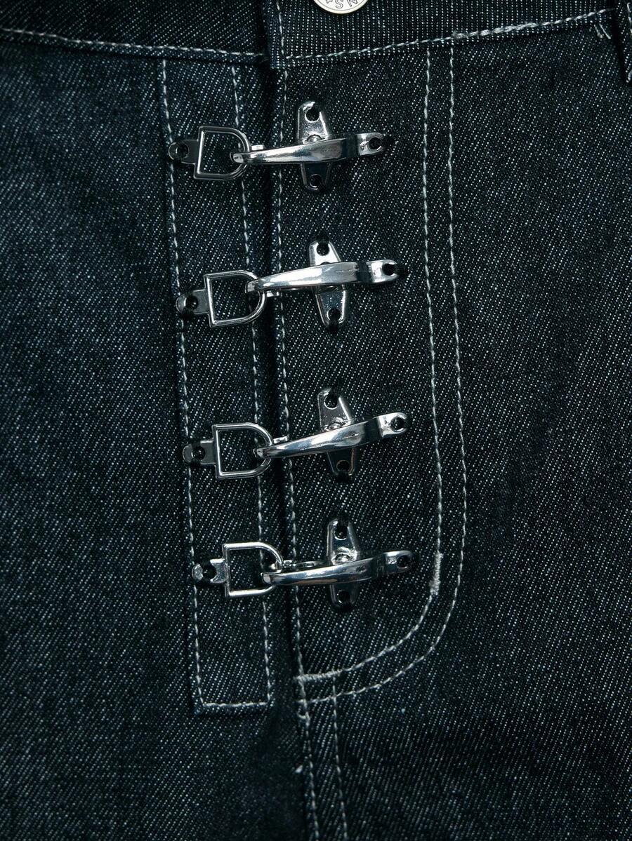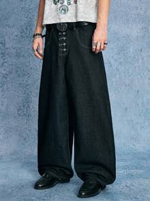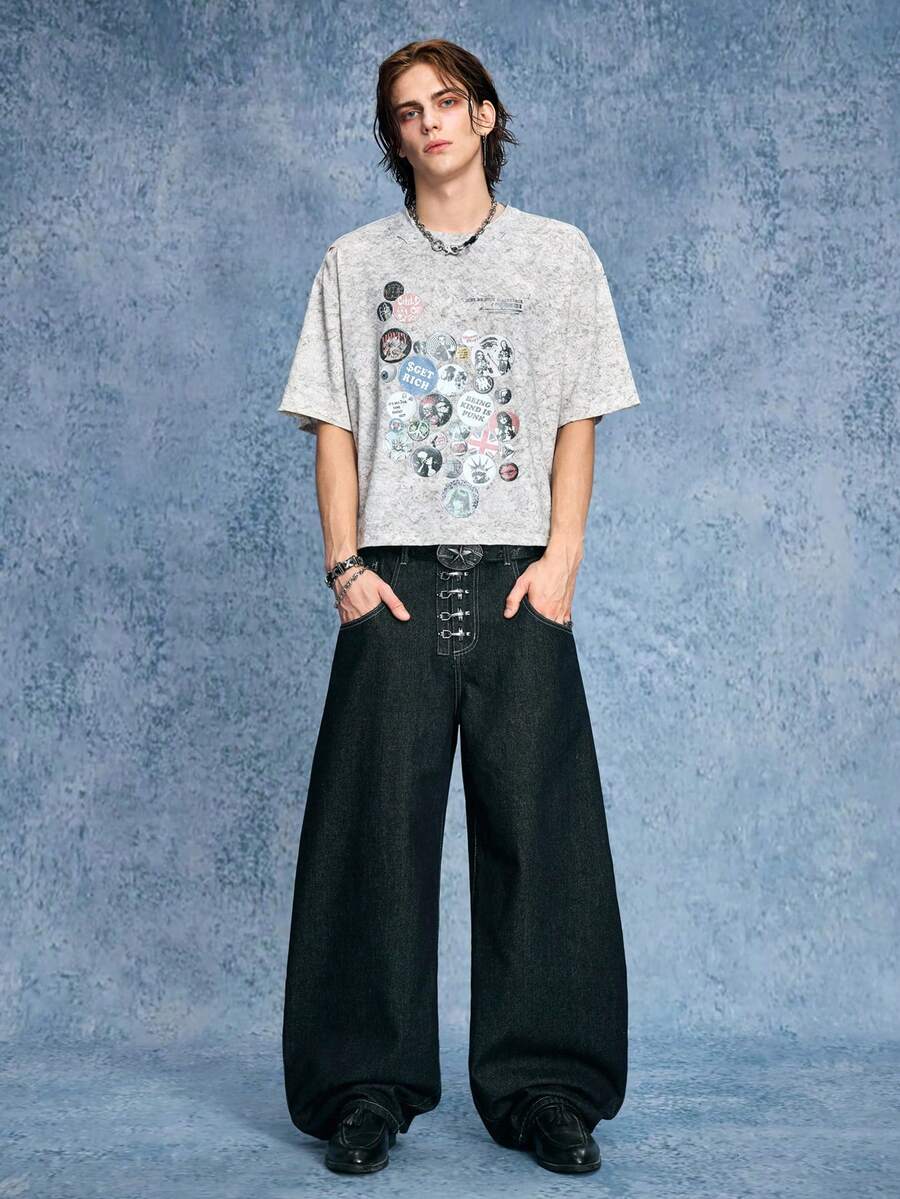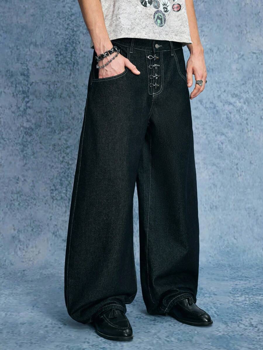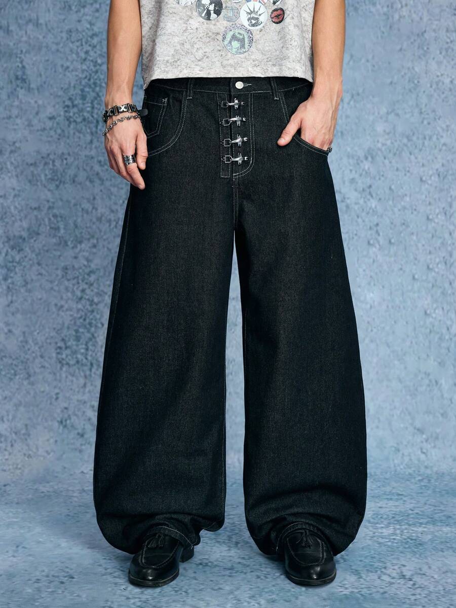 Grunge Punk Jeans en denim casual quotidien pour hommes avec boucle d'avion et couteau incurvé
