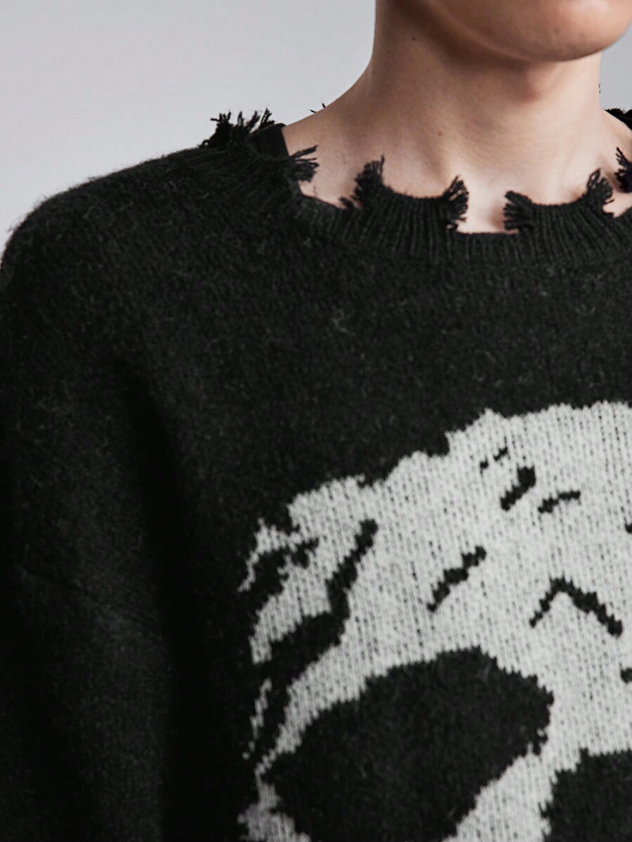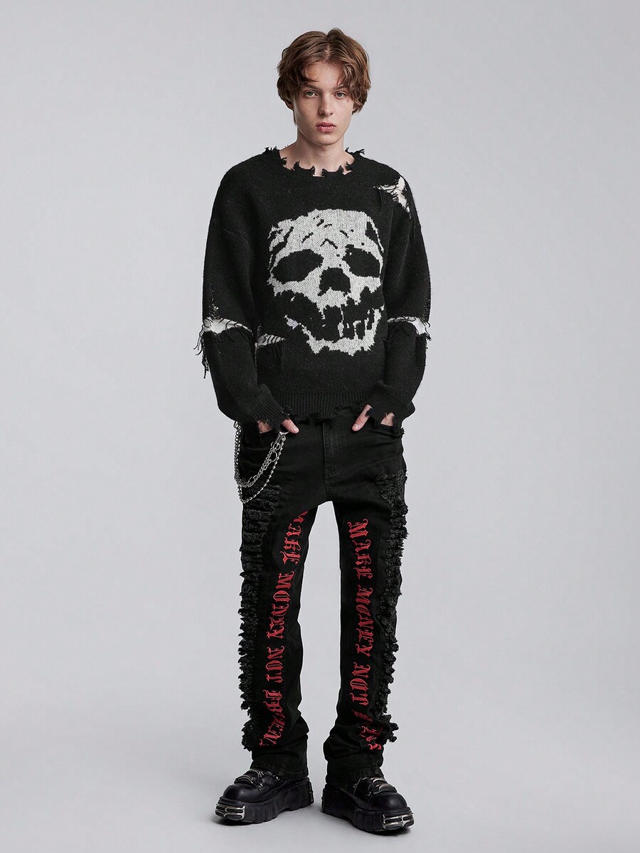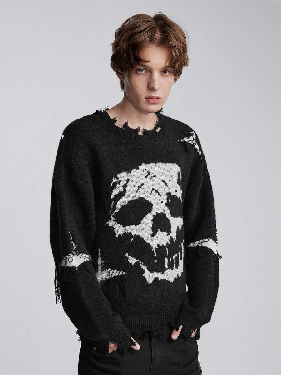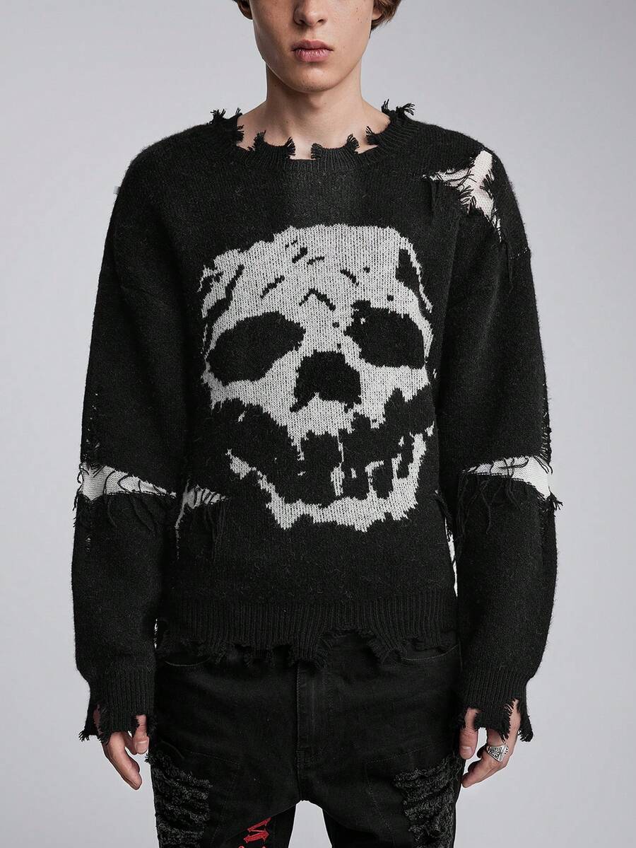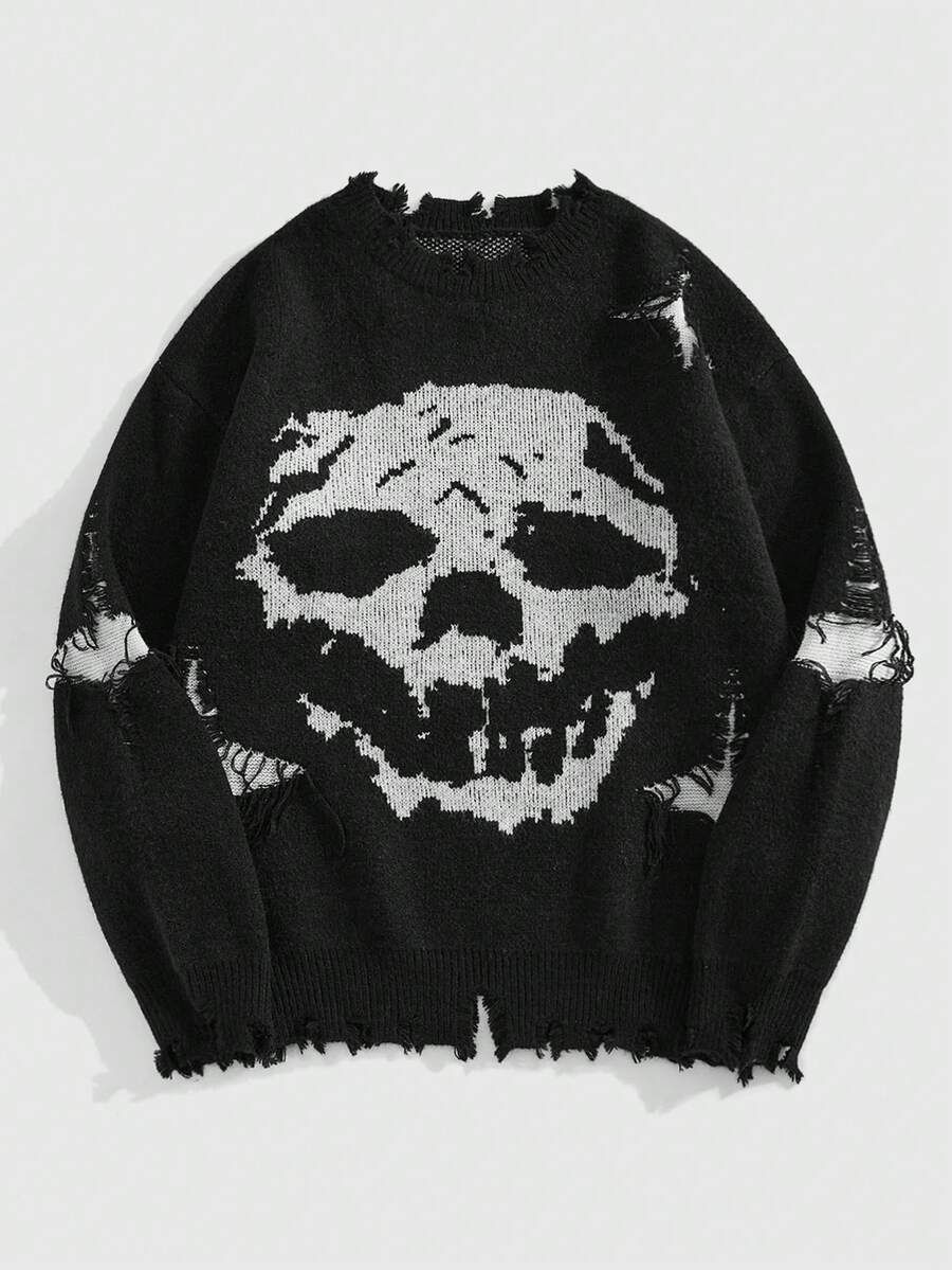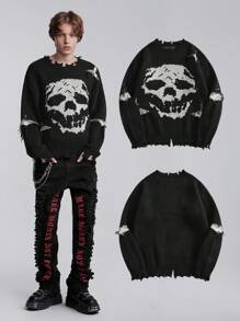 Grunge Punk Pull décontracté à manches longues col rond avec motif crâne pour hommes, automne/hiver