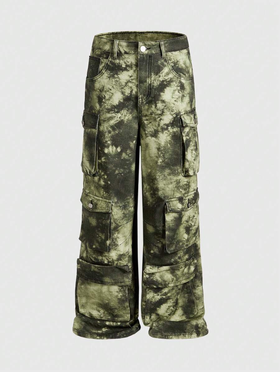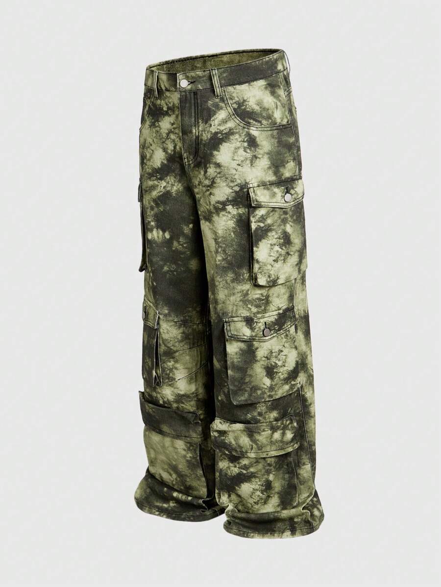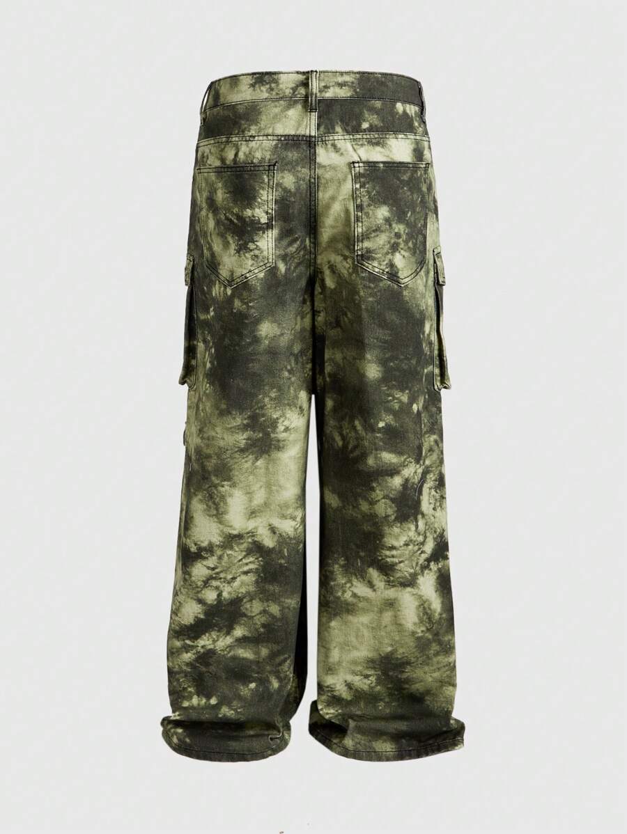 Grunge Punk Jeans cargo à jambes larges style tie-dye décontracté pour hommes
