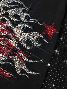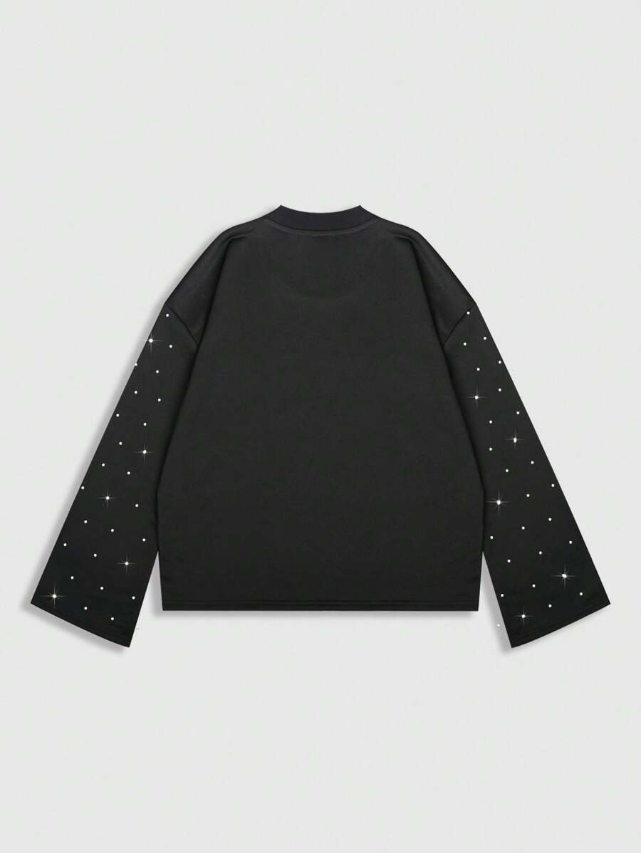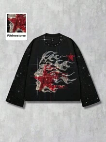Grunge Punk T-shirt à manches longues pour hommes avec imprimé de visage et d'étoiles en strass, style automnal des années 2000