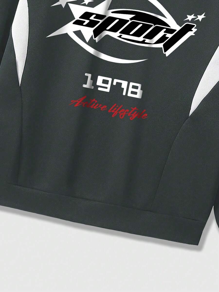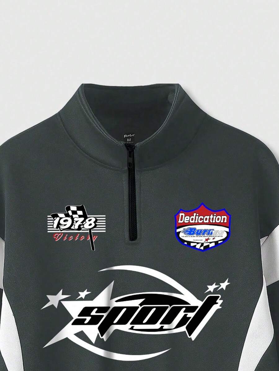Grunge Punk Sweat-shirt décontracté à demi-col montant avec zip et impression de lettre, manche longue, automne