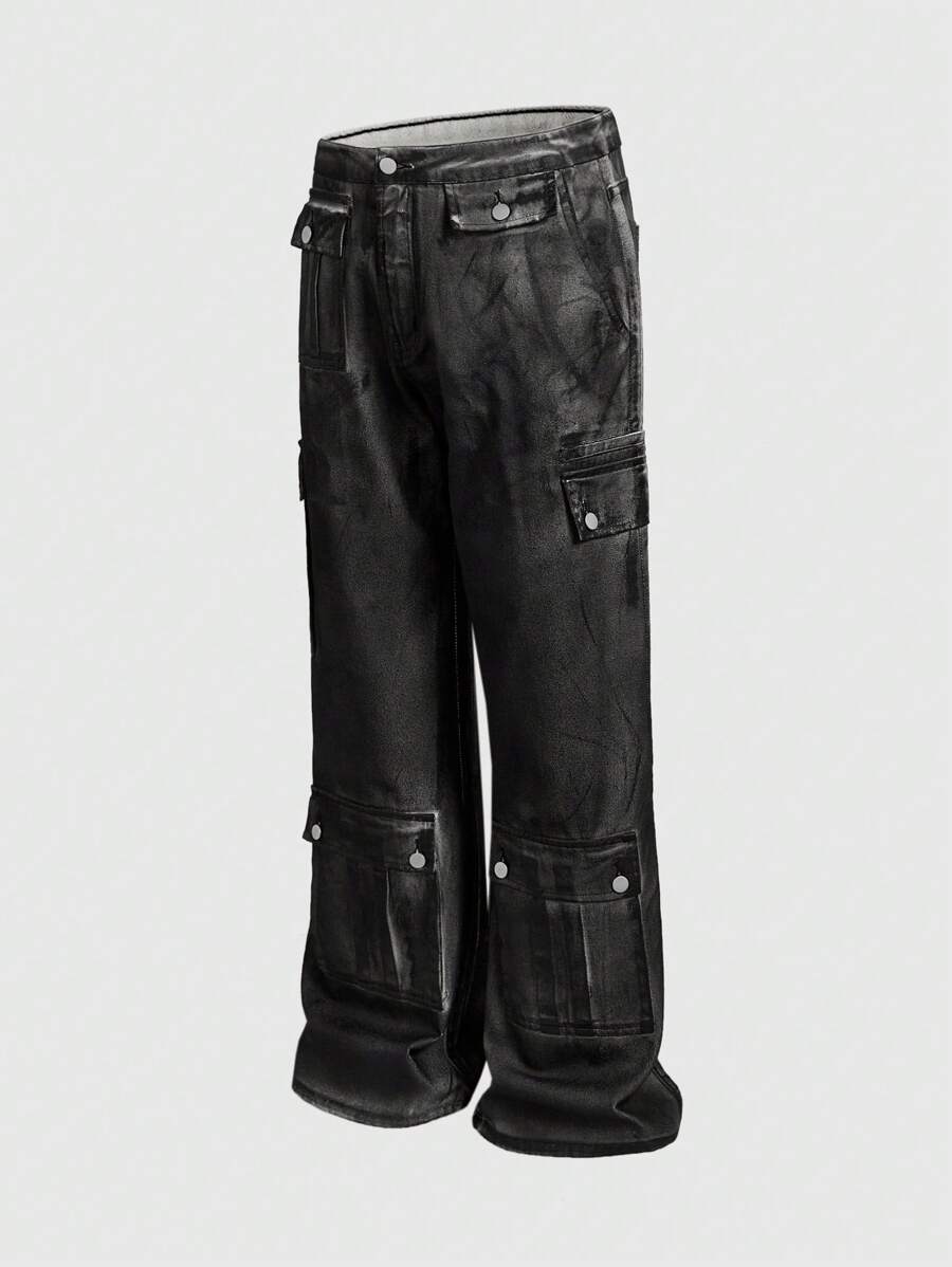 Grunge Punk Jeans décontractés à jambe droite avec poches cargo, coupe ample pour hommes