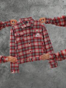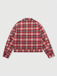 Grunge Punk Veste polaire à carreaux pour hommes, style de rue américain, automne/hiver