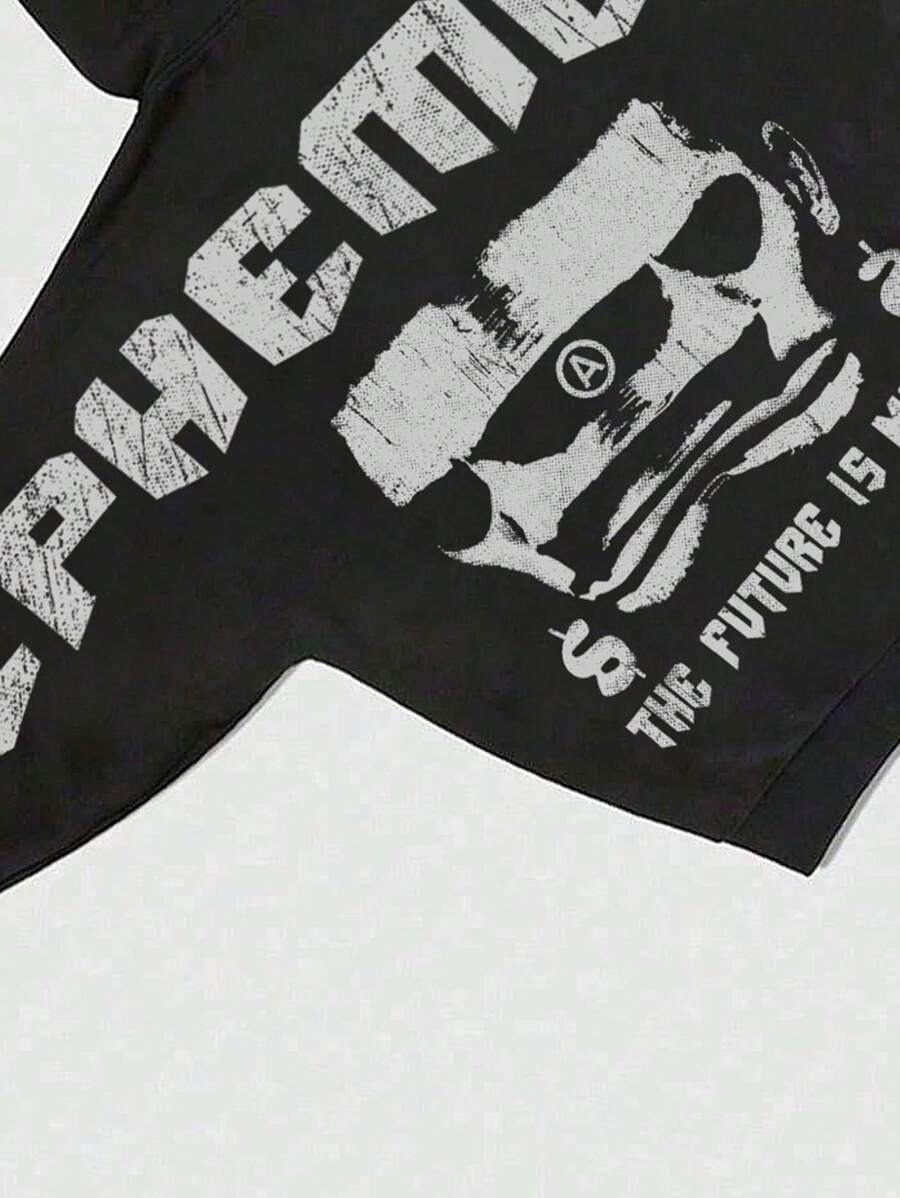 Grunge Punk Sweat-shirt à capuche casual zippé avec slogan et portrait graphique pour homme, style de rue, automne/hiver