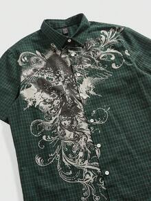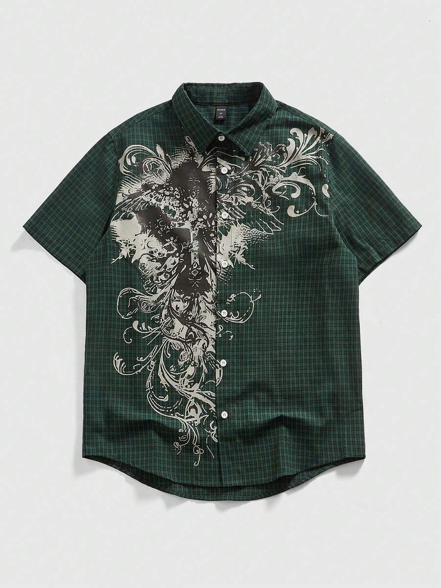 Grunge Punk Chemise décontractée à manches courtes, col rabattu, à carreaux, boutonnage simple, pour usage quotidien