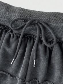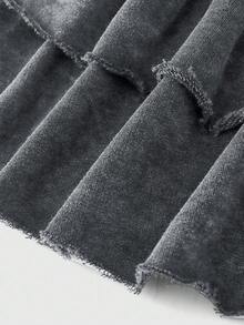 Grunge Punk Mini-jupe à taille basse et ourlet gâteau en tissu de sweat-shirt lavé pour femmes, style festival de musique
