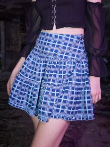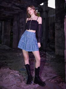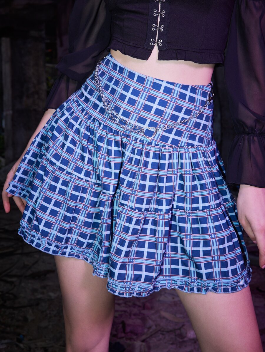 Grunge Punk Jupe patineuse à carreaux avec chaîne