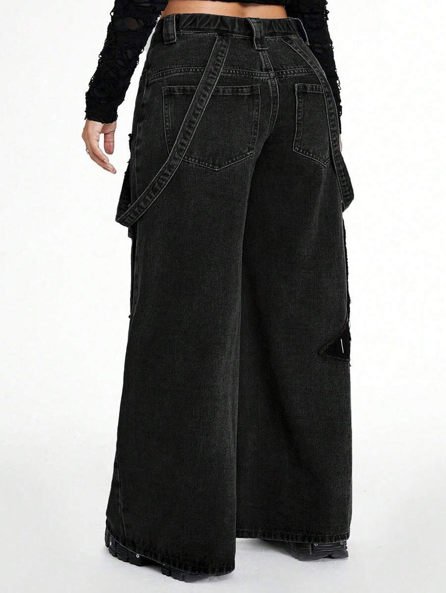 Grunge Punk Pantalon cargo ample à jambe large, grande taille, pour femmes. Style punk, délavé avec patchs étoilés