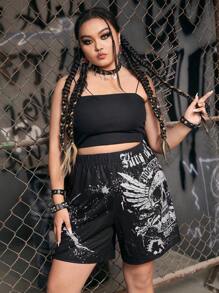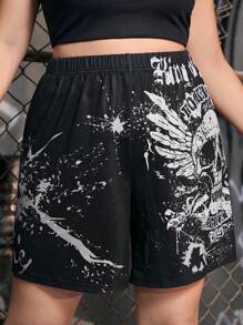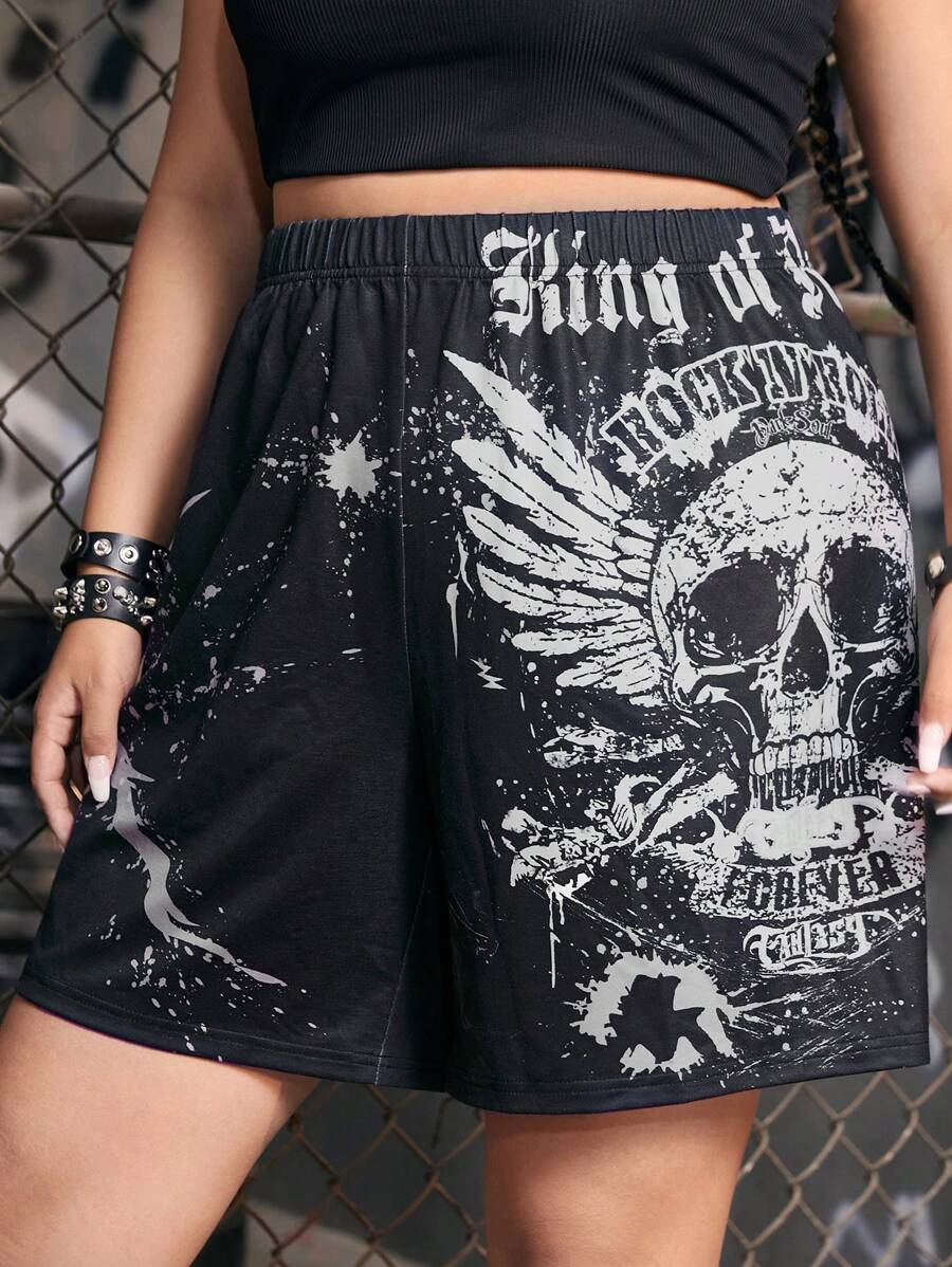 Grunge Punk Short Motif Tête De Mort Et Lettre