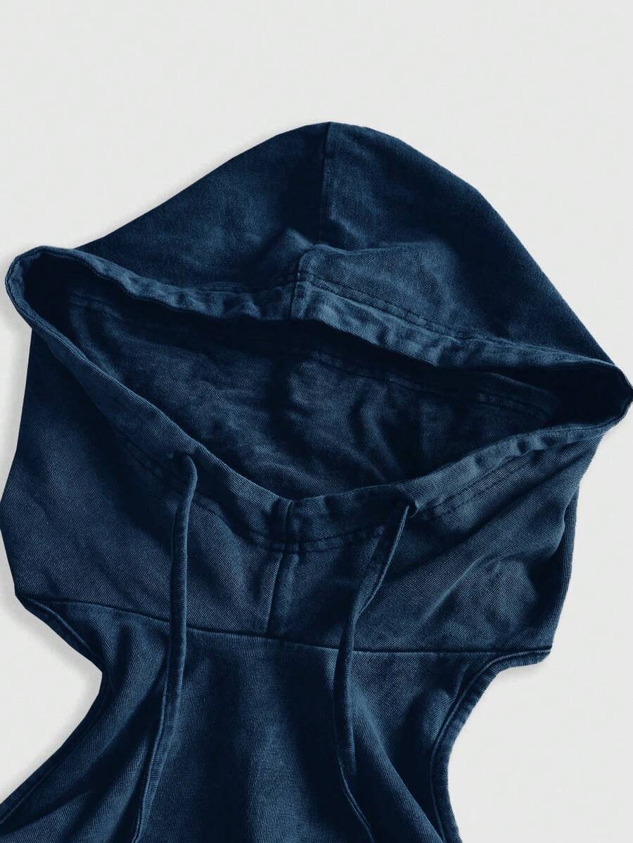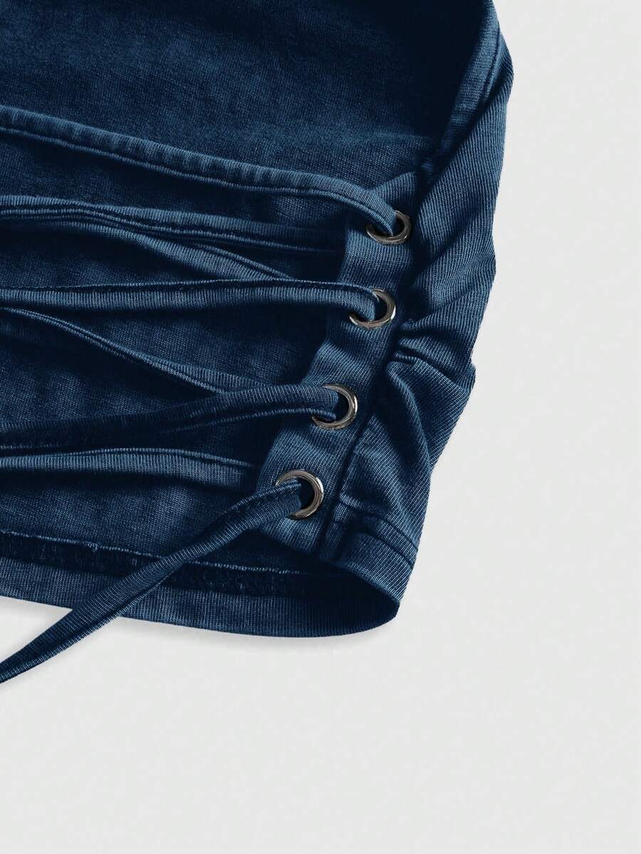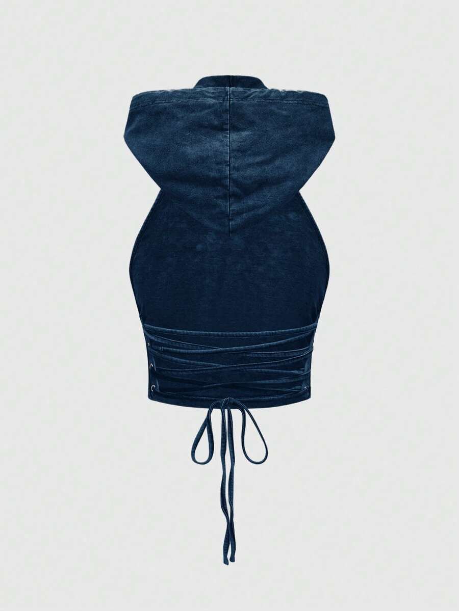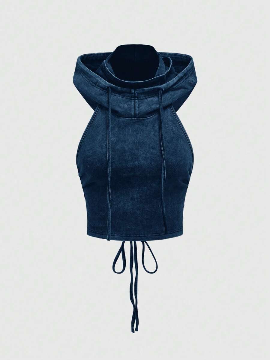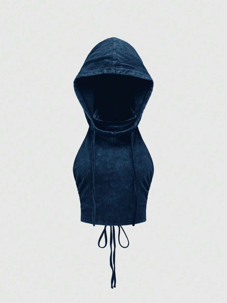 Grunge Punk Débardeur court ajusté pour femme avec capuche, dos nu et cordon de serrage, style punk apocalyptique pour festival de musique