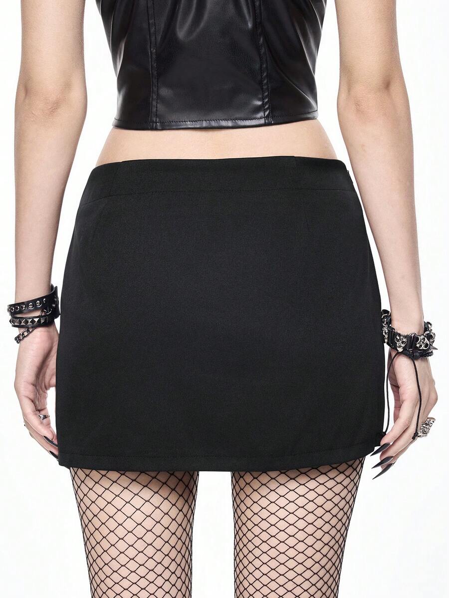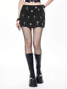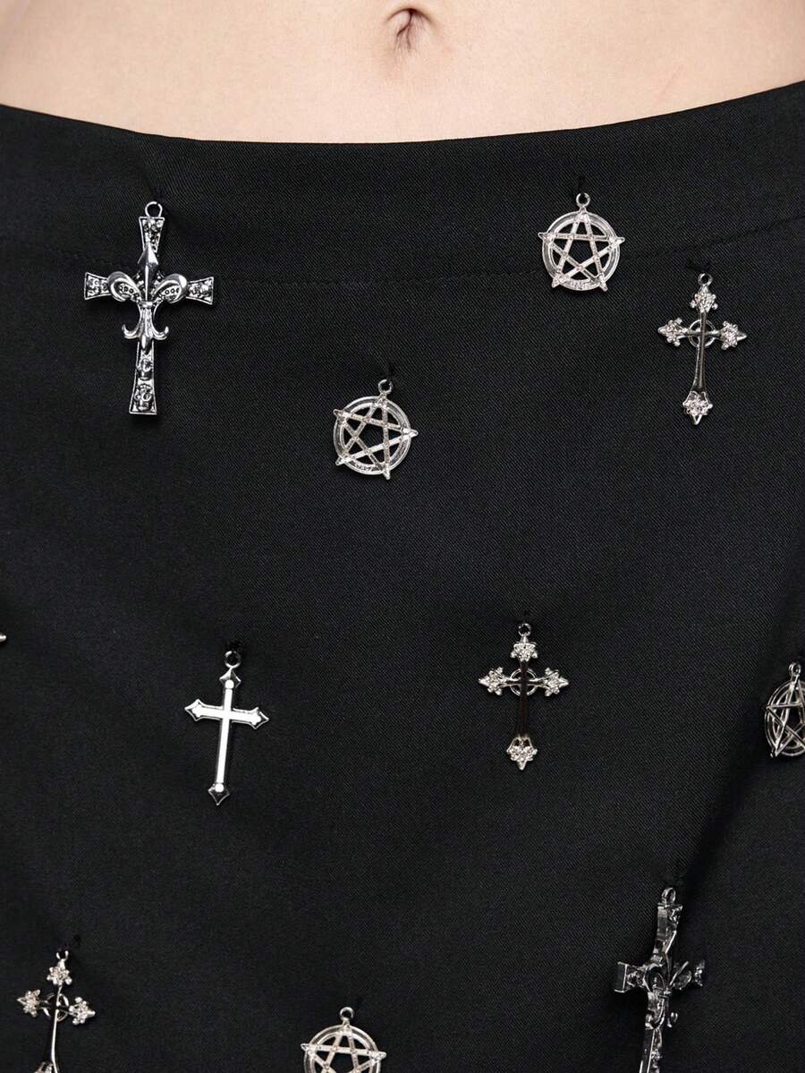 Grunge Punk Jupe mini taille basse avec décoration de pendentif croix en métal punk pour femmes