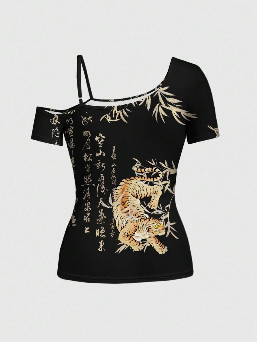 Grunge Punk T-shirt dos nu pour femmes, style punk, nouveau style chinois, festival de musique, sombre, mystérieux et sexy