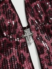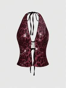 Grunge Punk Tenue de fête de plage chic punk rock d'été, festival, mode de rue, débardeur sexy Y2K à imprimé léopard pailleté avec pendentif croix pour femmes